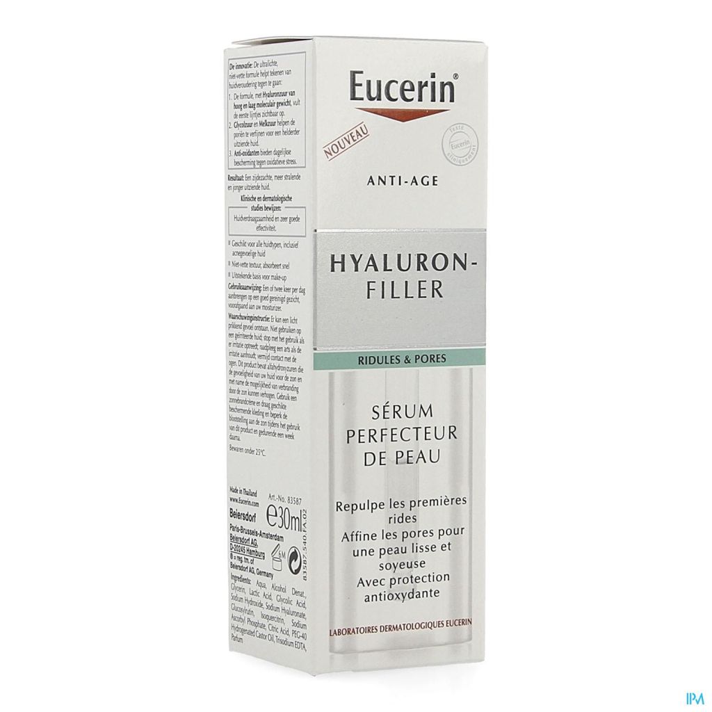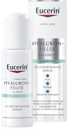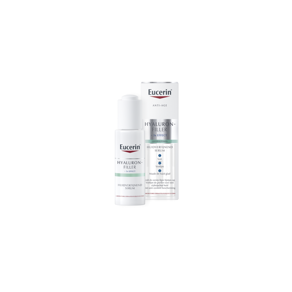 Luttez contre les premiers signes de vieillissement de la peau et affinez les pores avec le nouveau sérum affinant Hyaluron-Filler d'Eucerin. Ce sérum ultra-léger contient trois ingrédients actifs, dont l'acide hyaluronique, l'acide glycolique et l'acide lactique, qui laissent la peau lisse et soyeuse. Cette formule aux antioxydants protège également la peau des radicaux libres et des dommages cutanés causés par les facteurs environnementaux.