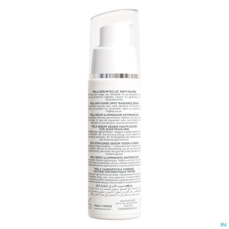 MELA Sérum Eclat Anti-Taches corrige les taches et prévient leur apparition pour une peau plus unifiée dès 7 jours. Grâce à l'association entre le Brevet Complexe MELA et la baie de schissandre à la nouvelle voie d'action innovante sur les inducteurs de la mélanogénèse, ce Sérum Eclat Anti-Taches offre une correction intensive sur tous les types de taches pigmentaires, unifie et ravive l'éclat du teint. Sa texture fraîche, ultra-légère et fluide, hydrate la peau tout en étant très agréable à appliquer.