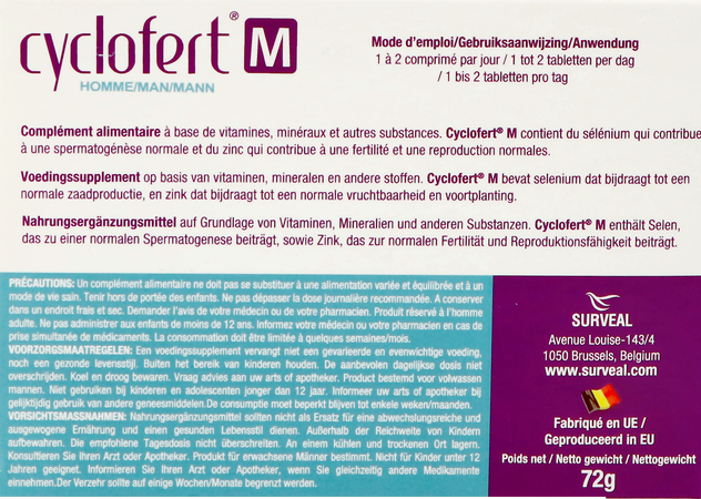 Surveal Laboratoires a associé des micronutriments qui jouent un rôle dans la protection contre le stress oxydatif (zinc, sélénium, vitamines E et C) afin de répondre aux besoins nutritionnels des hommes qui souhaitent avoir un enfant.