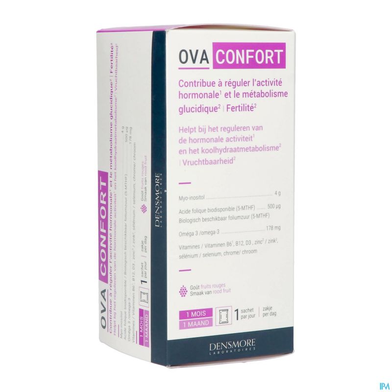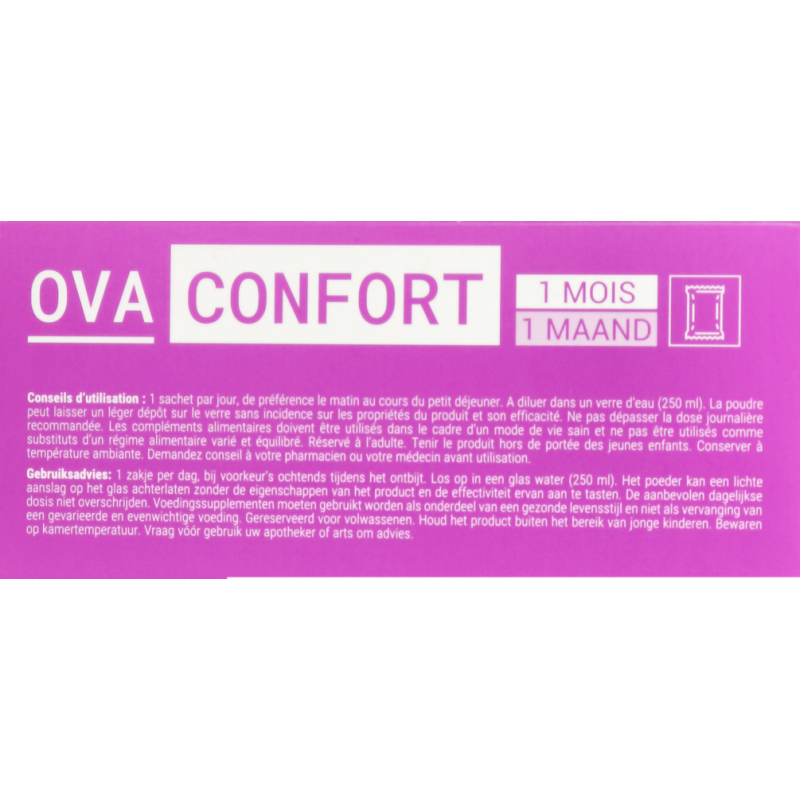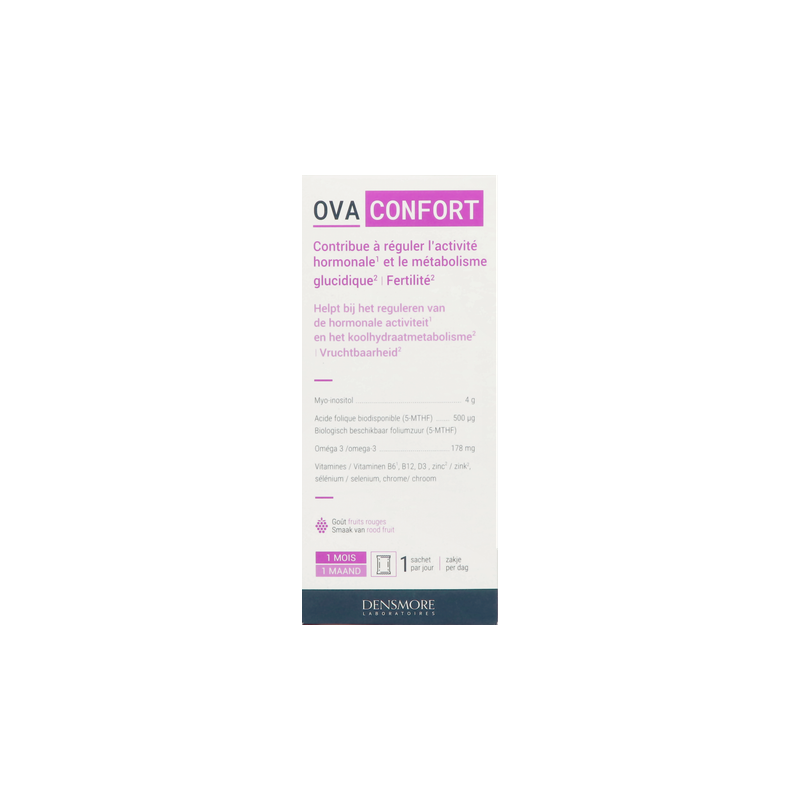 OVA'CONFORT® contribue à réguler l'activité hormonale grâce à la vitamine B6¹. Grâce à l'apport de zinc, OVA'CONFORT® favorise le maintien d'un taux normal de testostérone dans le sang, contribue à un métabolisme glucidique normal et aide à soutenir la fertilité et la reproduction². Le chrome contribue au maintien d'une glycémie normale. Les folates (B9) et la vitamine B6 contribuent au maintien d'un état psychologique normal et à réduire la fatigue.