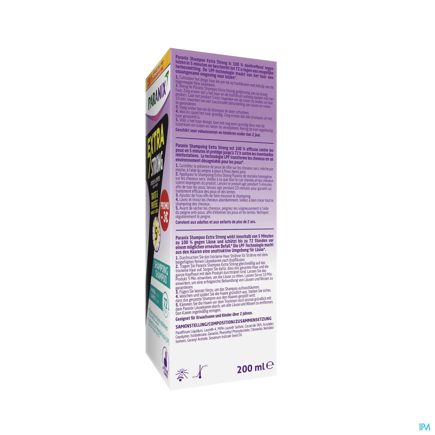 Cet emballage contient un flacon de 200 ml de Shampoing Paranix Extra Strong et un peigne pour enlever les poux et les lentes.
