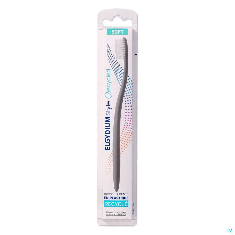 ELGYDIUM Style Recycled est une brosse à dents au manche en polypropylène 100% recyclé et aux brins d'origine végétale qui respectent les dents et gencives. L'expérience et l'expertise d'ELGYDIUM conjuguée à une réduction de l'impact environnemental, pour une brosse à dents à utiliser idéalement trois fois par jour après les repas avec un dentifrice répondant à vos besoins spécifiques en termes d'hygiène et de soins bucco-dentaires.