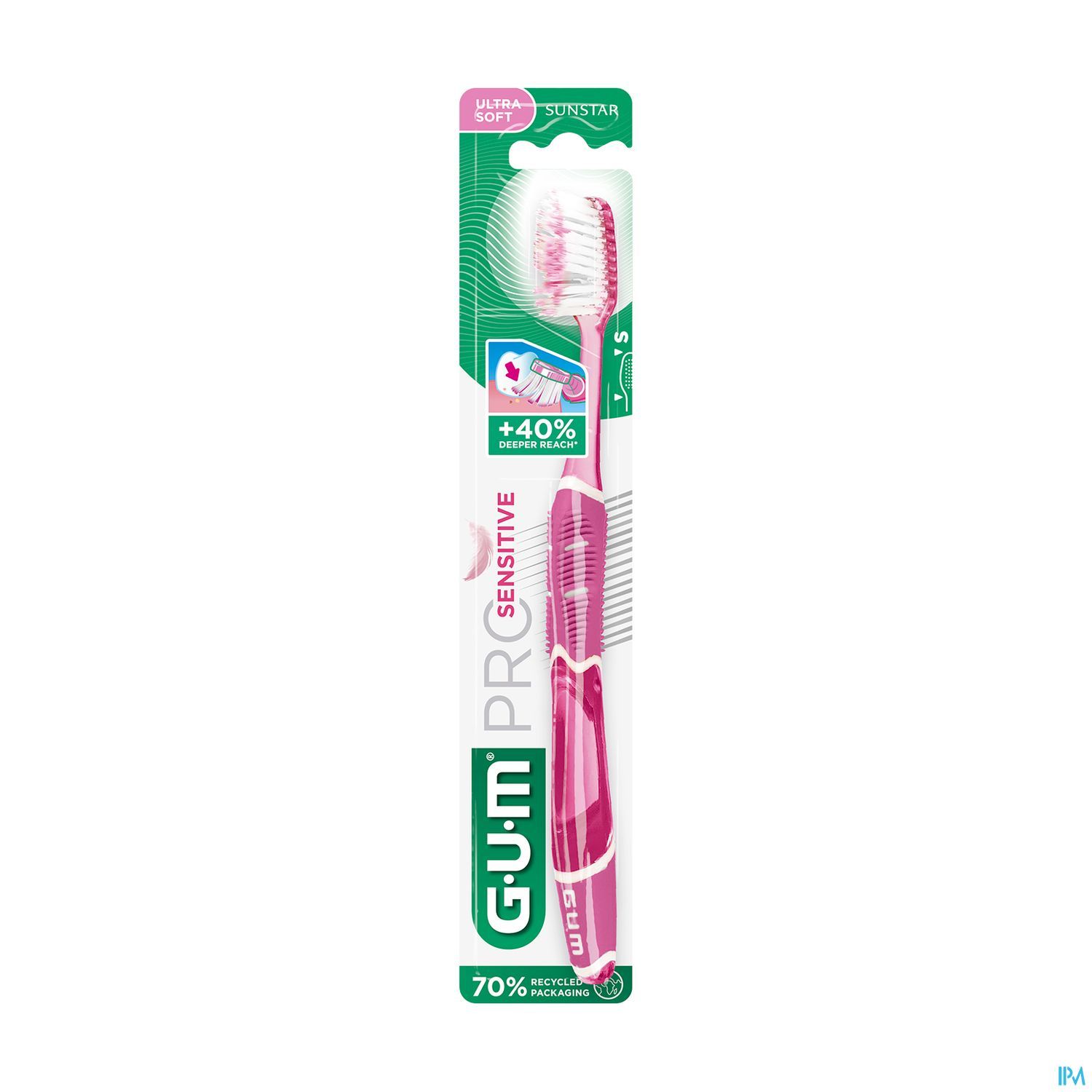 Pour de meilleurs résultats, nous recommandons d'utiliser la brosse à dents GUM PRO SENSITIVE avec le dentifrice et le bain de bouche GUM SensiVital®.