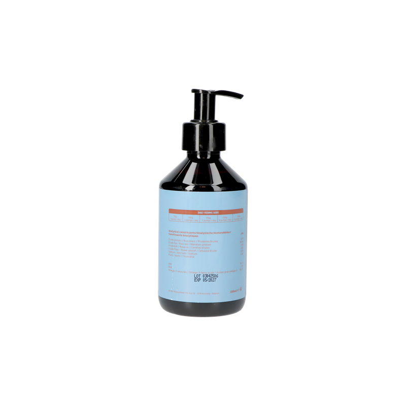 Notre huile de sardine 100 % pure regorge d'acides gras oméga-3 (EPA et DHA) qui contribuent à un pelage brillant, une peau saine, des articulations souples et un système immunitaire fort. Sans additifs, sans agents de remplissage, uniquement la puissance pure de la mer.