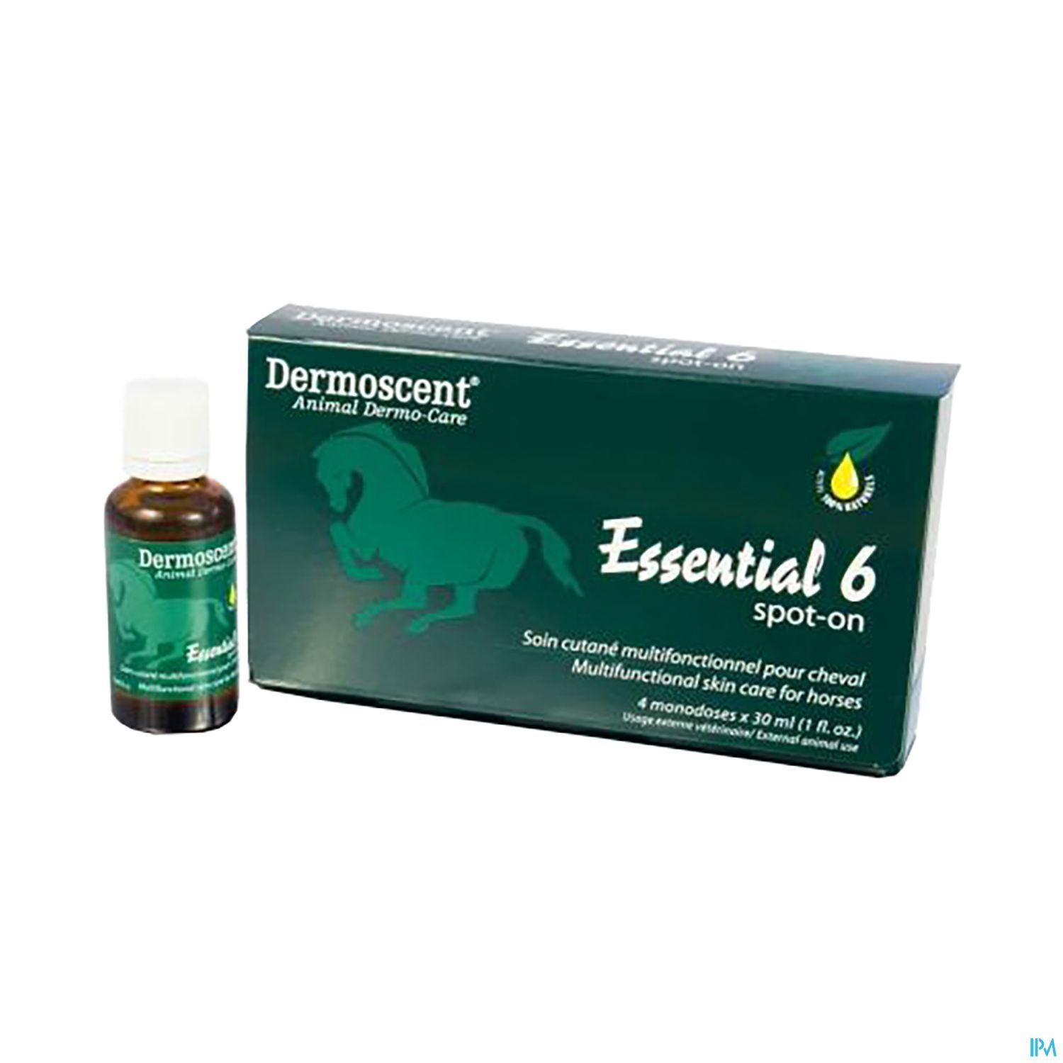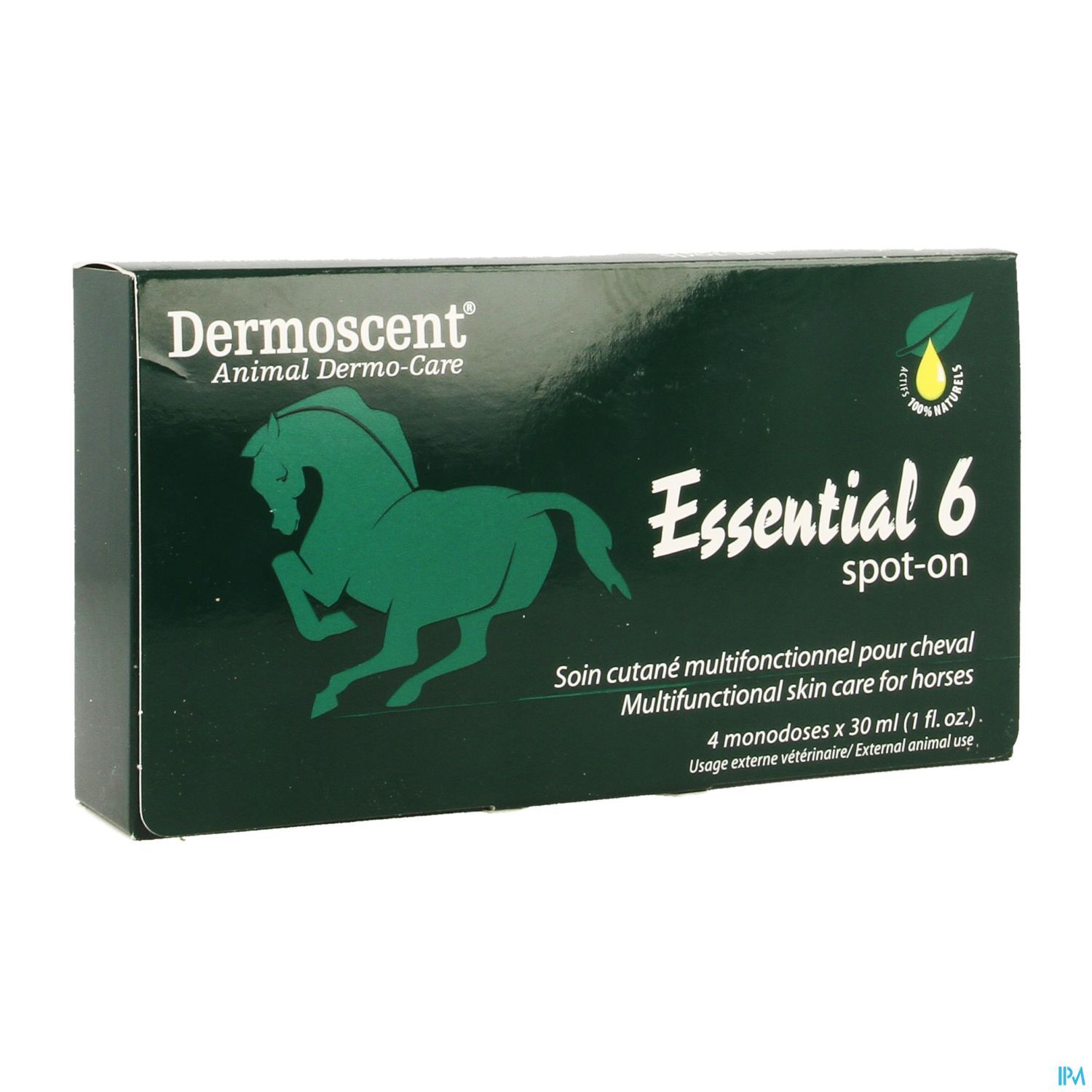Essential 6 Spot-On de Dermoscent est un produit de soin de la peau destiné aux chevaux. Il favorise la purification de la peau et aide à résoudre les problèmes cutanés saisonniers. Le produit de soin pour chevaux contient des ingrédients 100% naturels. Essential 6 peut être utilisé pour différents problèmes de peau, tels que les squames, la peau sèche, la perte de poils, les pellicules, le pelage gras et le déséquilibre de la microflore de la peau. Grâce à Essential 6, le pelage de votre cheval s'améliorera à nouveau. Le Spot-On peut également être utilisé à titre préventif, une utilisation régulière permet d'obtenir des résultats optimaux.