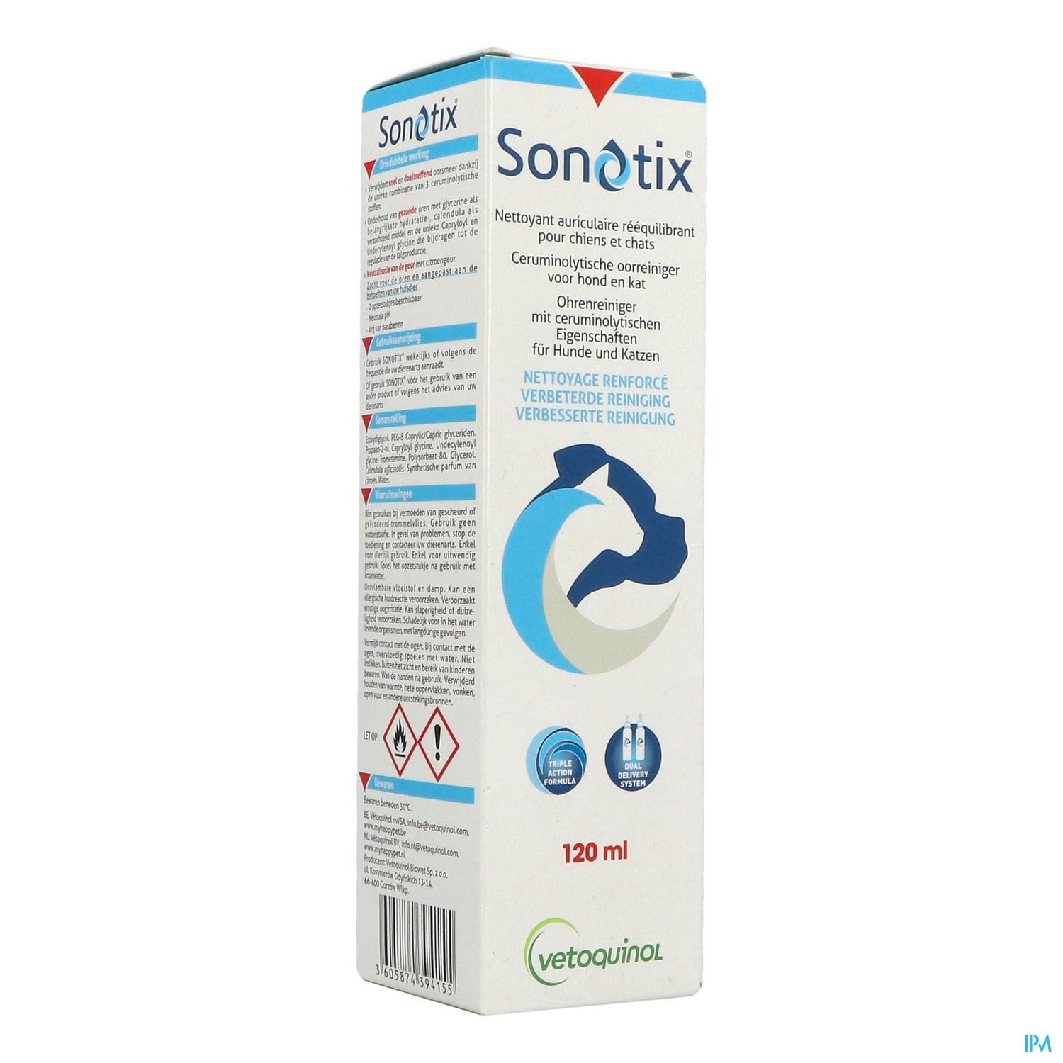 Sonotix est un puissant nettoyeur d'oreilles pour chiens et chats, qui peut être utilisé aussi bien pour les oreilles sensibles qu'en cas de problèmes d'oreilles.