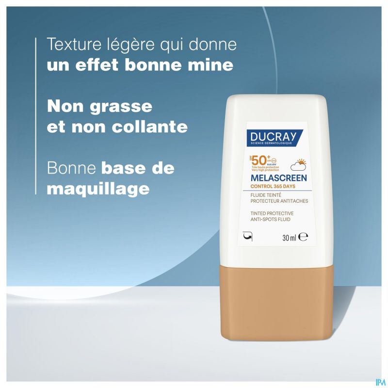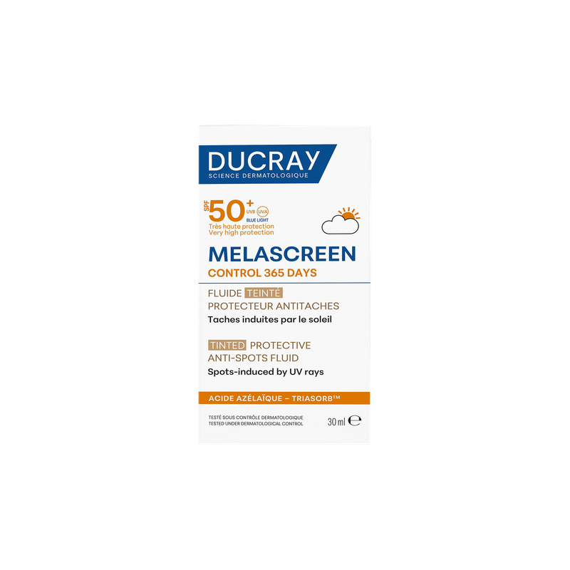 - 1er fluide teinté antitaches SPF50+ Melascreen au format nomade qui corrige et prévient l'apparition des taches brunes, tout en protégeant la peau contre les UVB, les UVA longs, la lumière bleue et la pollution.