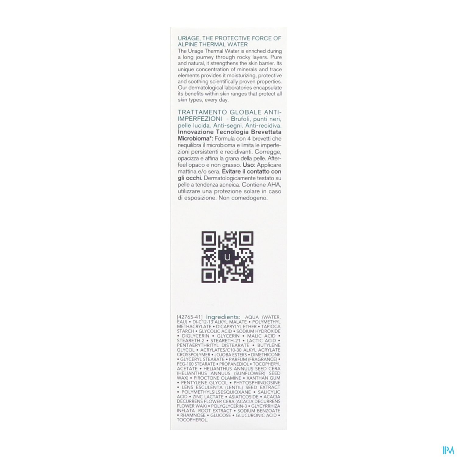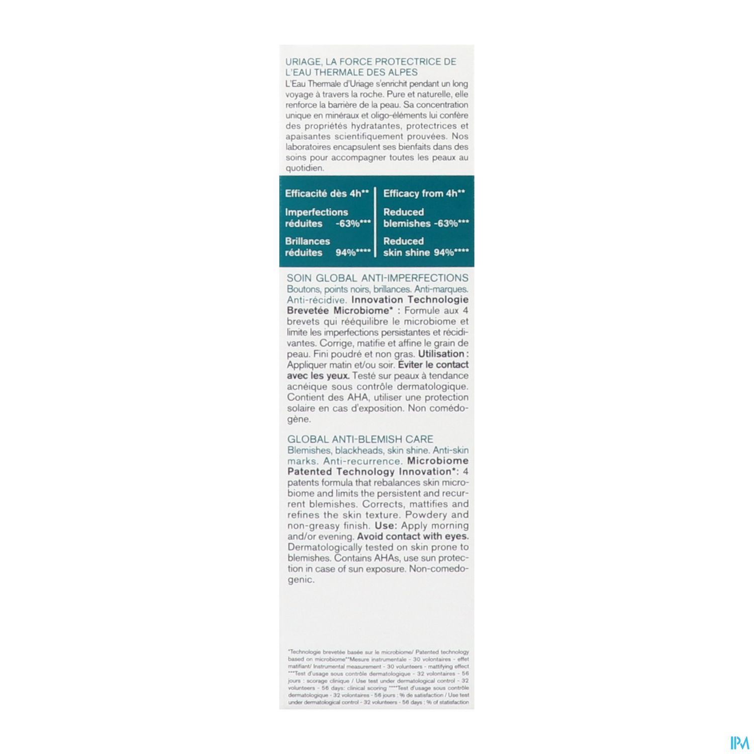 Ce soin global contre les imperfections associe la TECHNOLOGIE MICROBIOME brevetée à l'EAU THERMATIQUE D'URIAGE, l'acide SALICYLIQUE, les AHA et le ZINC pour rééquilibrer le microbiome de l'acné et réduire les imperfections tenaces et récurrentes :