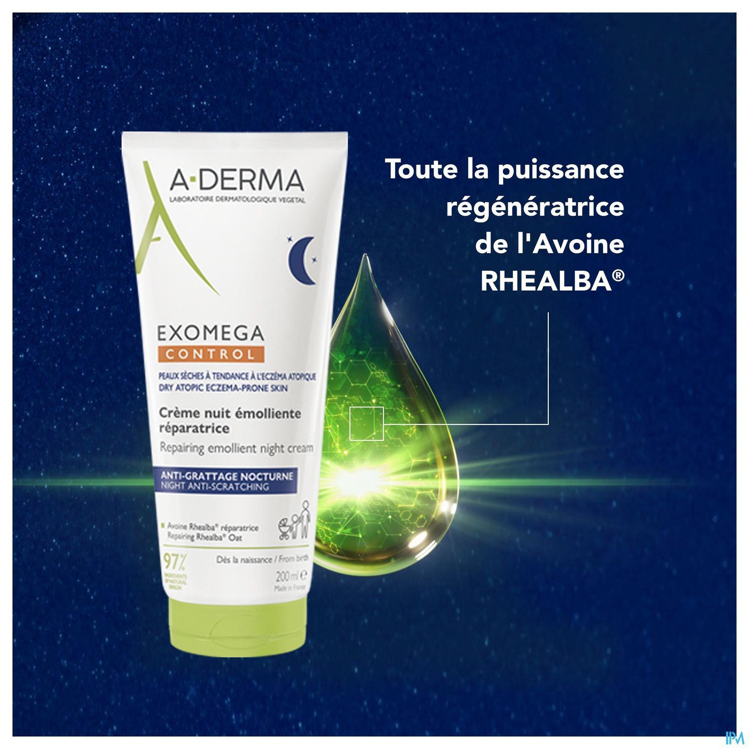 La crème nuit émolliente réparatrice EXOMEGA CONTROL met les grattages des peaux sèches sujettes à l'eczéma atopique en sommeil et permet de retrouver un sommeil réparateur grâce à un nouveau duo d'actif naturel puissant. Le RHEALBA apaisant & l'HELICHRYSE ciblant les molécules responsables du grattage pour 2X moins de réveils nocturnes*. *Étude clinique sur 21 sujets ayant une peau sèche atopique. 1 application par jour. Résultats après 4 semaines