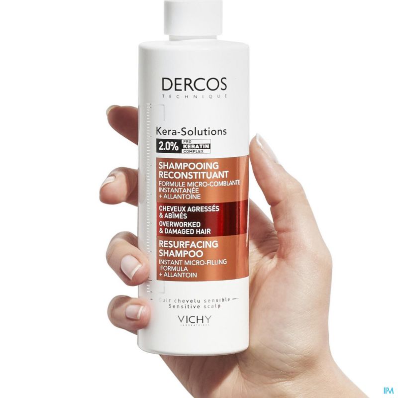 Les rayons UV, les agressions mécaniques, thermiques et chimiques endommagent la fibre capillaire en réduisant son niveau de kératine. Le shampooing réparateur Kera-Solutions a été développé pour réparer les cheveux surmenés et abîmés tout en protégeant les cuirs chevelus sensibles. Sa formule micro-repulpante* à 2 % de complexe pro-kératine nourrit et répare les cheveux sans les alourdir.