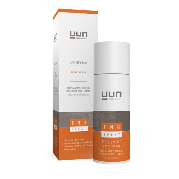 Un soin des pieds qui combat et prévient la mycose du pied, les démangeaisons, les irritatons et la formation des squames. FNG Spray est un spray actif qui contient de bonnes bactéries qui combattent la mycose du pied et les bactéries nuisibles. FNG Spray est naturel, à base de probiotiques et doux pour la flore cutanée.