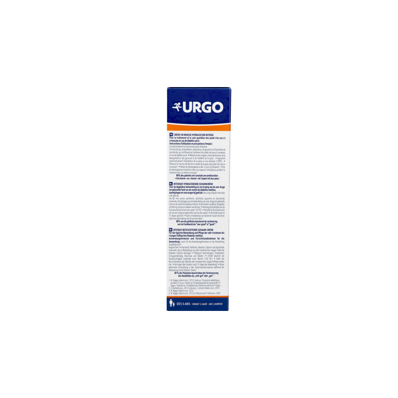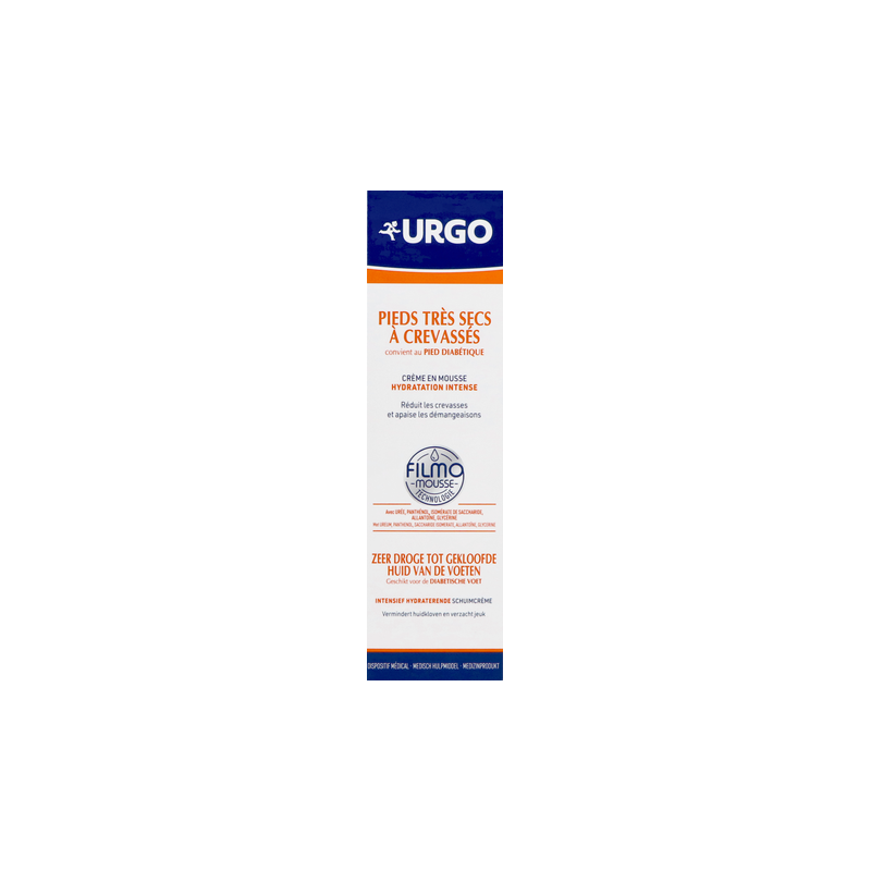 URGO Filmomousse Intensive Hydratante est conçue pour traiter la peau très sèche et les fissures des pieds et convient aux pieds diabétiques.