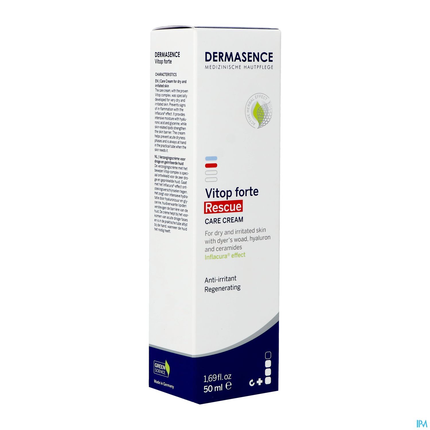 La crème de soin au complexe Vitop éprouvé a été spécialement développée pour les peaux très sèches et irritées. Elle combat les symptômes inflammatoires grâce à l'effet Inflacura®. Elle hydrate intensément grâce à l'acide hyaluronique et à la glycérine, tandis que des lipides similaires à ceux de la peau renforcent la barrière cutanée. La crème aide à prévenir les phases de sécheresse aiguë et, grâce à son tube pratique, elle est toujours à portée de main lorsque la peau en a besoin.