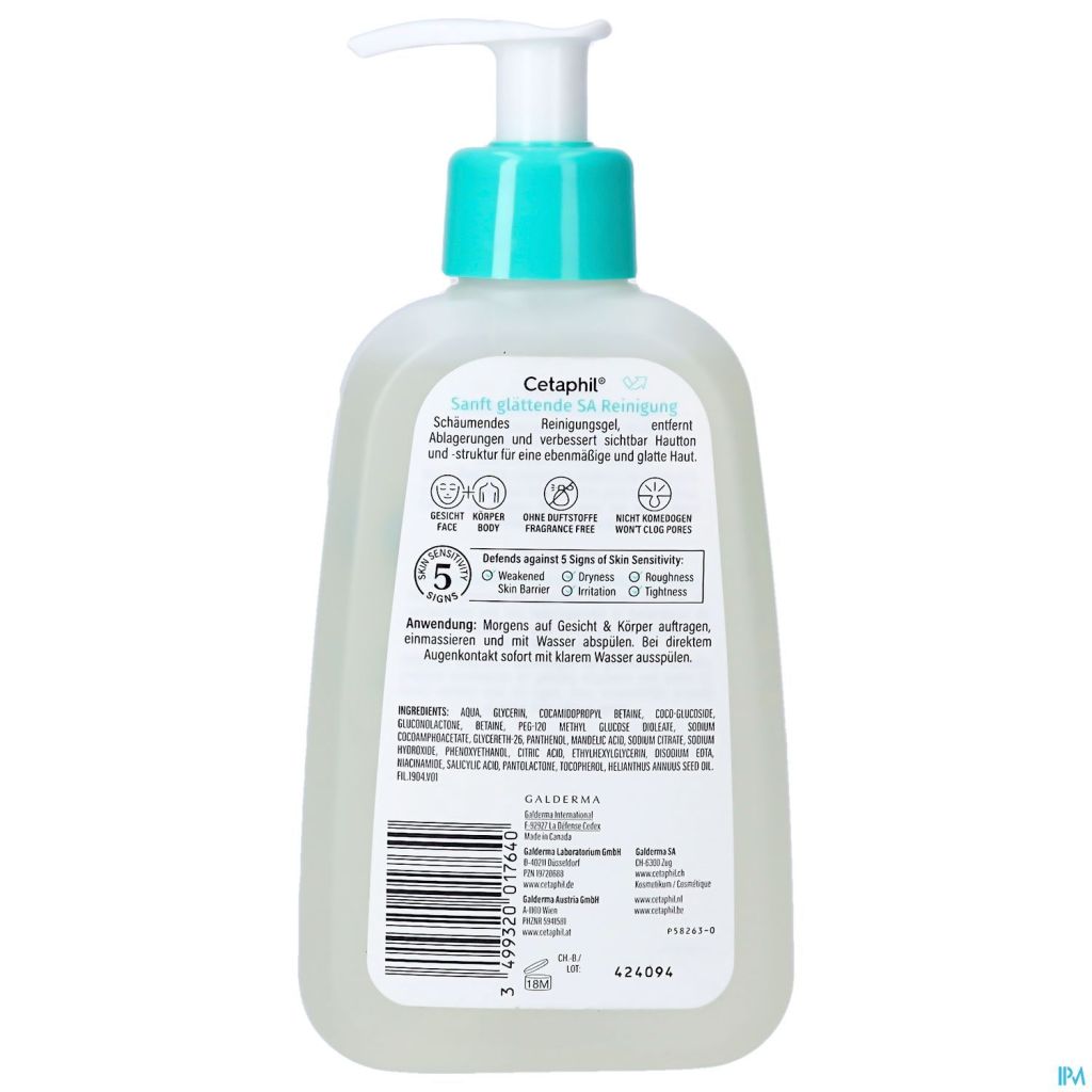 CETAPHIL GENTLE EXFOLIATING SA CLEANSER : Nettoie et exfolie en douceur pour favoriser le renouvellement de la peau, pour une peau uniforme et éclatante après une seule utilisation.