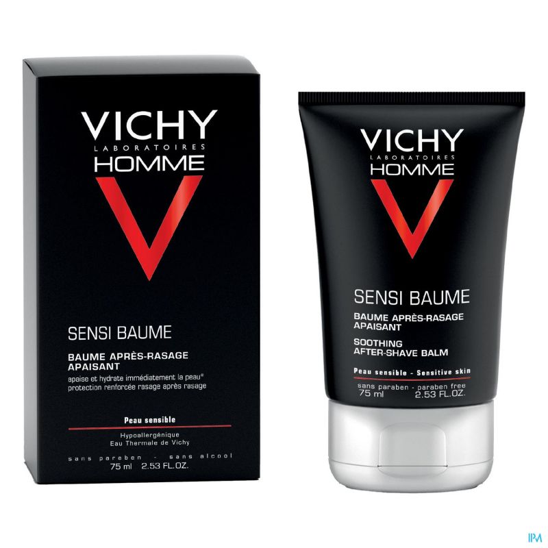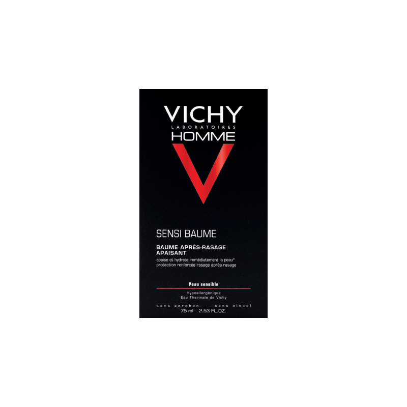 Le baume après rasage Sensi Baume des laboratoires Vichy apaise et hydrate immédiatement la peau. Une peau renforcée rasage après rasage.