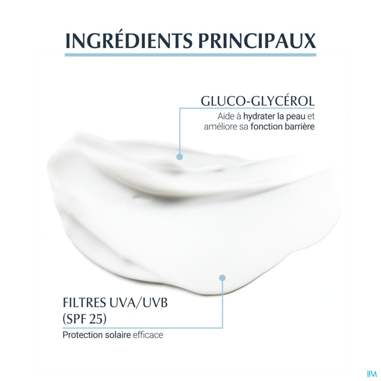 Propriétés protection UVA et UVB, sans parfum, sans paraben, non-comédogène, pénétration rapide, excellente base de maquillage