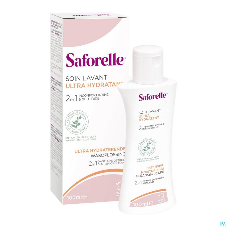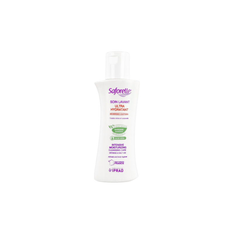 Le Soin Lavant Ultra Hydratant Saforelle nettoie, hydrate et apaise la peau sèche.