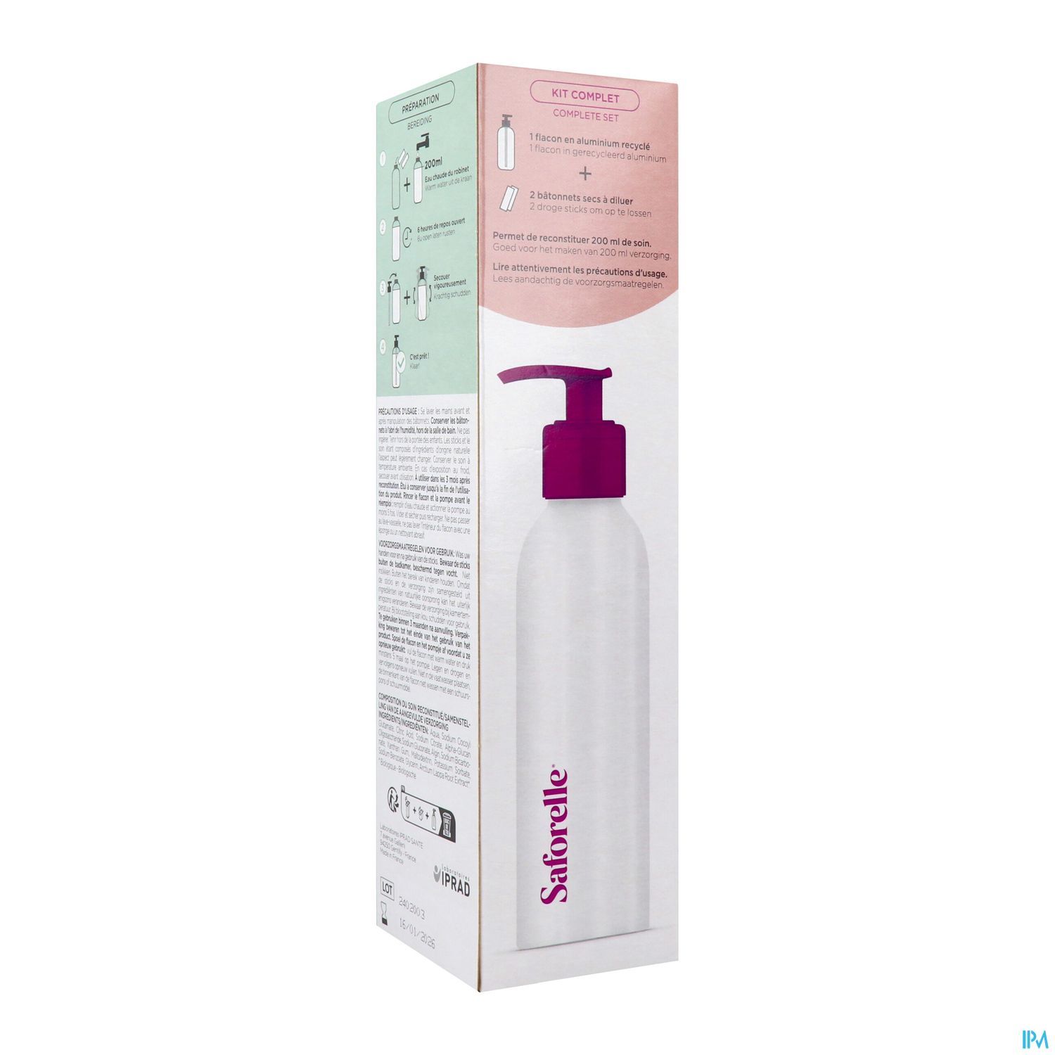 - Le kit peut être utilisé pour fabriquer une solution de lavage intime de 200 ml.