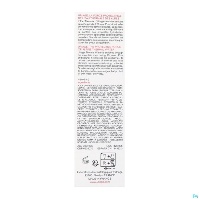 Riche en Eau Thermale d'Uriage aux propriétés hydratantes et apaisantes et en Cérasterol-2F qui restructure durablement la barrière cutanée, cette crème hydrate et apporte un confort immédiat et durable à la peau.