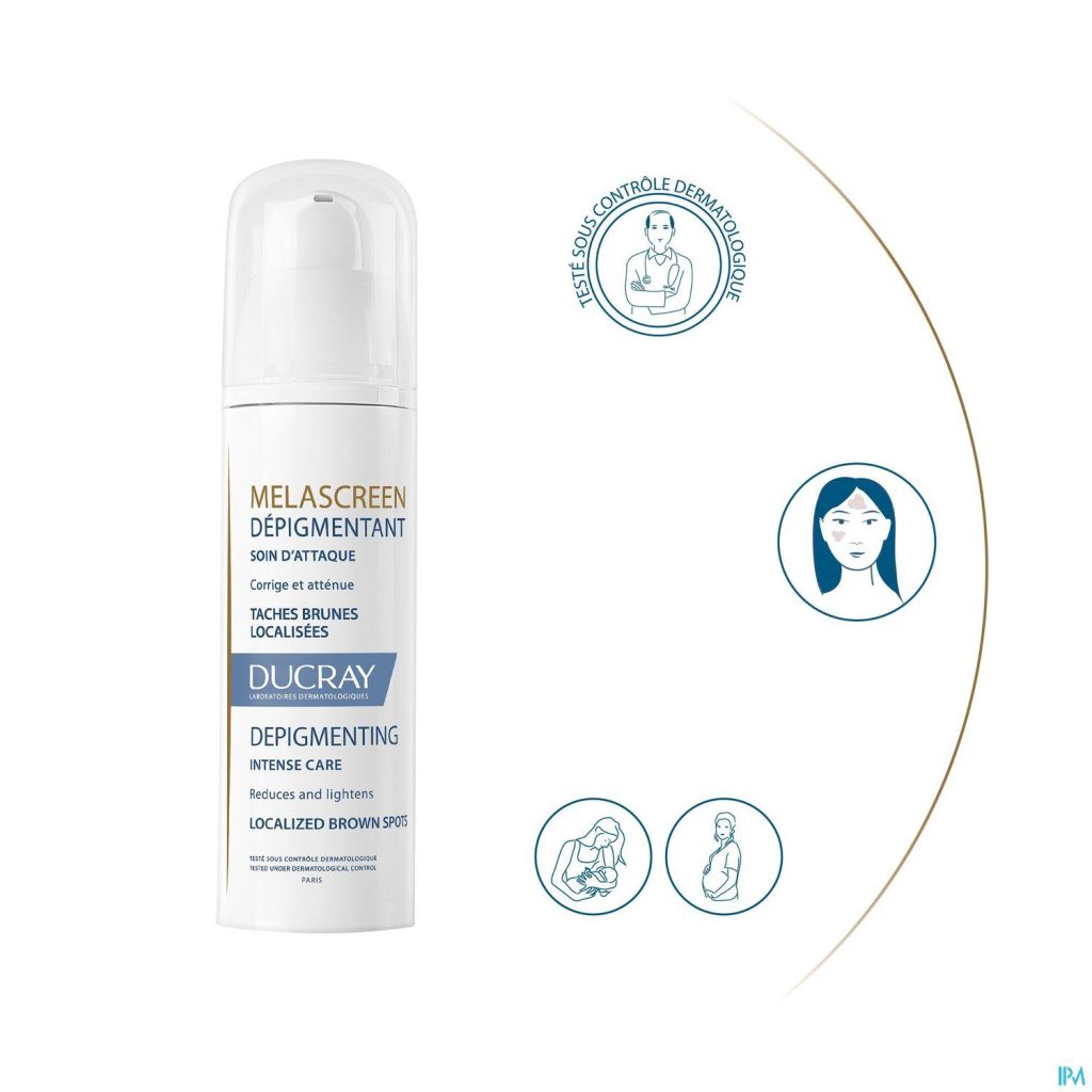 • MELASCREEN DÉPIGMENTANT Soin d'attaque agit sur les hyperpigmentations, telles que les taches brunes