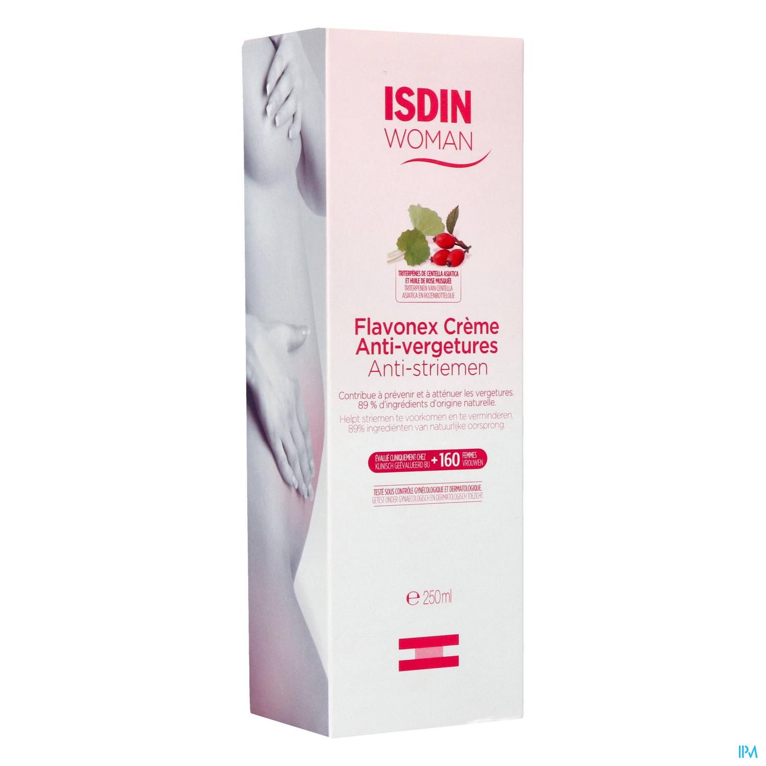 ISDIN WOMAN Contre les vergetures est une crème pour le corps à absorption rapide et à hydratation intense, contenant 89% d'ingrédients naturels, dont l'herbe de tigre, l'églantier et le beurre de karité. Contient de la vitamine E à effet antioxydant. Des études cliniques montrent qu'il contribue à prévenir et à réduire les vergetures. Il améliore également l'élasticité de la peau et est très apprécié pour ses propriétés organoleptiques (parfum, texture, absorption).