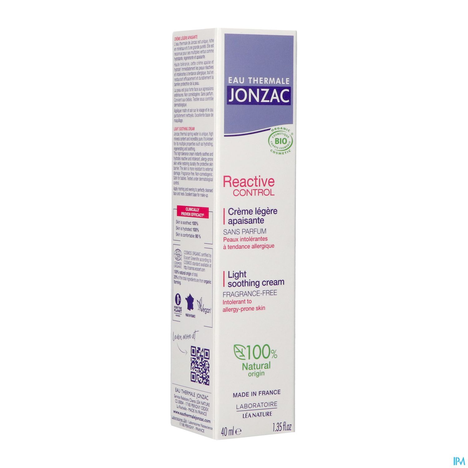 La gamme Reactive CONTROL est destinée aux peaux intolérantes à tendance allergique. Certifiées biologiques et composées d'eaux thermales de Jonzac, les formules 100% naturelles, très haute tolérance aux actifs biomimétiques, apportent un soulagement immédiat et durable. Pour l'hydratation quotidienne du visage, Reactive CONTROL propose une crème apaisante et sans parfum.