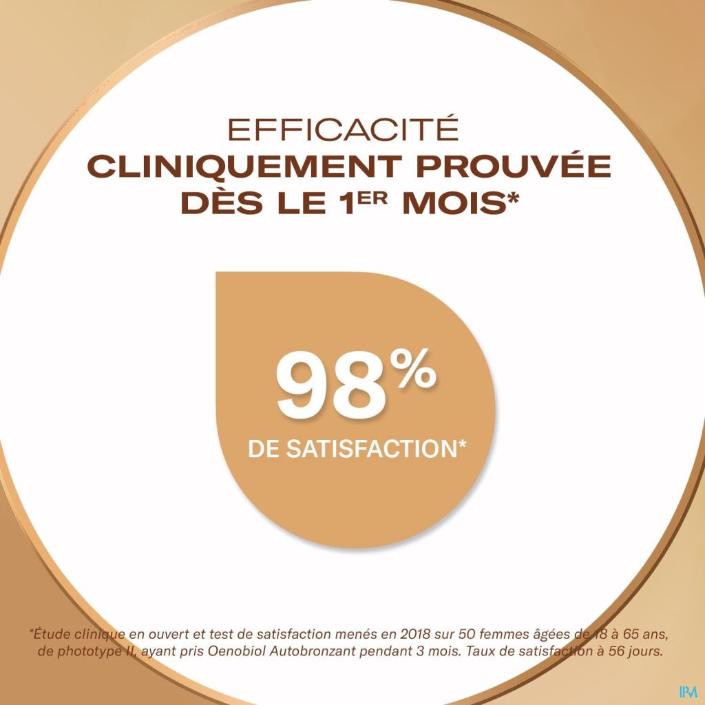 Oenobiol Teint de Bronze est une association exclusive d'ingrédients d'origine naturelle pour le maintien d'un bronzage durable et lumineux. Sa formule renforcée* est composée de lycopène, de tagète, de zéaxanthine, d'astaxanthine et de curcuma. Elle contient aussi du cuivre qui contribue à la pigmentation normale de la peau**. Dès le premier mois, Oenobiol Teint de Bronze contribue au maintien d'un bronzage lumineux avec un rendu naturel sur l'ensemble du corps, sans tache ni trace sur la peau. Cette cure contient 30 capsules, pour 1 mois. Retrouvez les conditions du programme fidélité sur oenobiol.com : Recevez un produit gratuit à l'achat de 5 produits! *Plus 100% de lutéine et plus 30% de lycopène et d'astaxanthine par rapport à Oenobiol Joli Teint formule 2015-2017 - **Le cuivre contribue à la pigmentation normale de la peau.