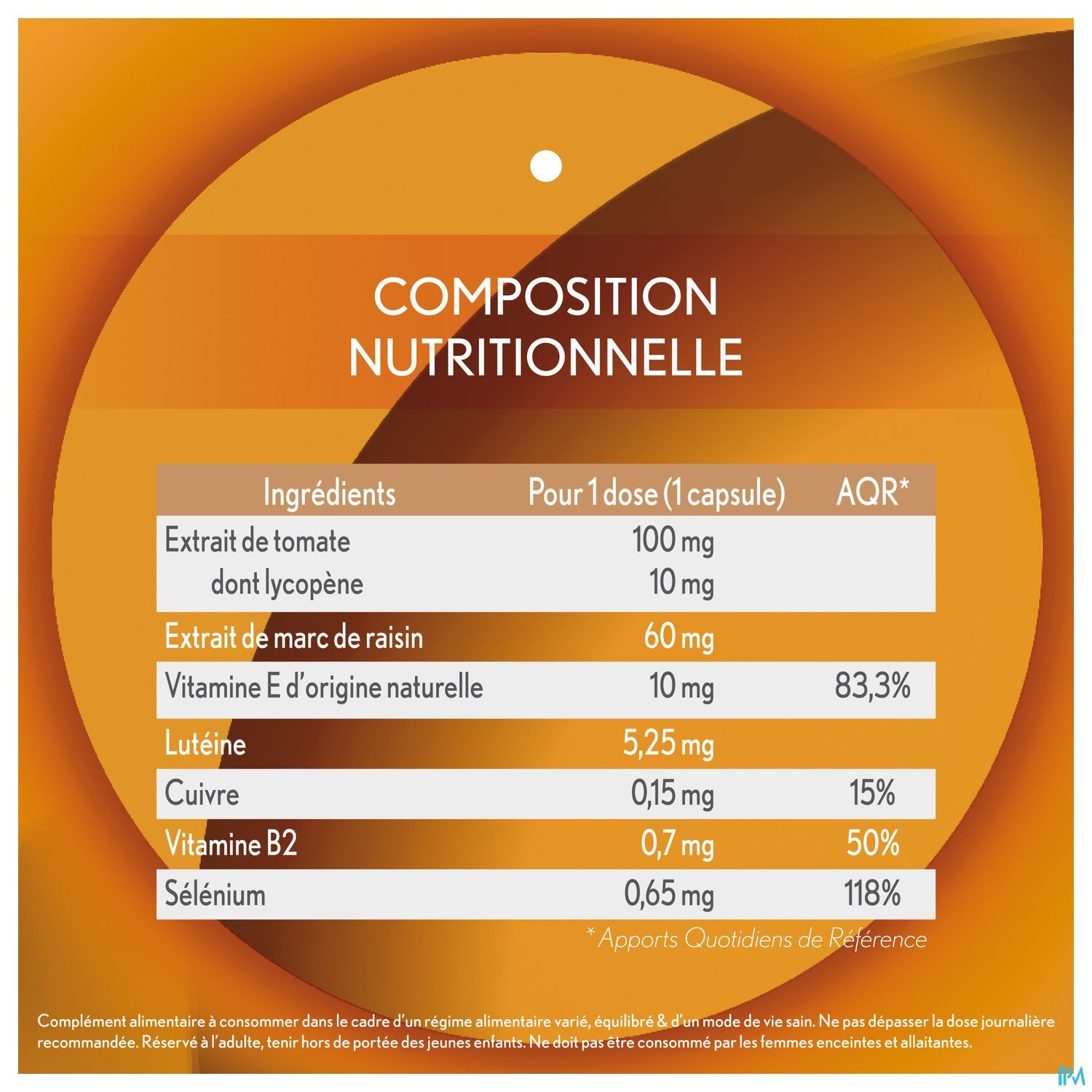 1 capsule par jour, 1 mois avant l'exposition solaire & pendant.