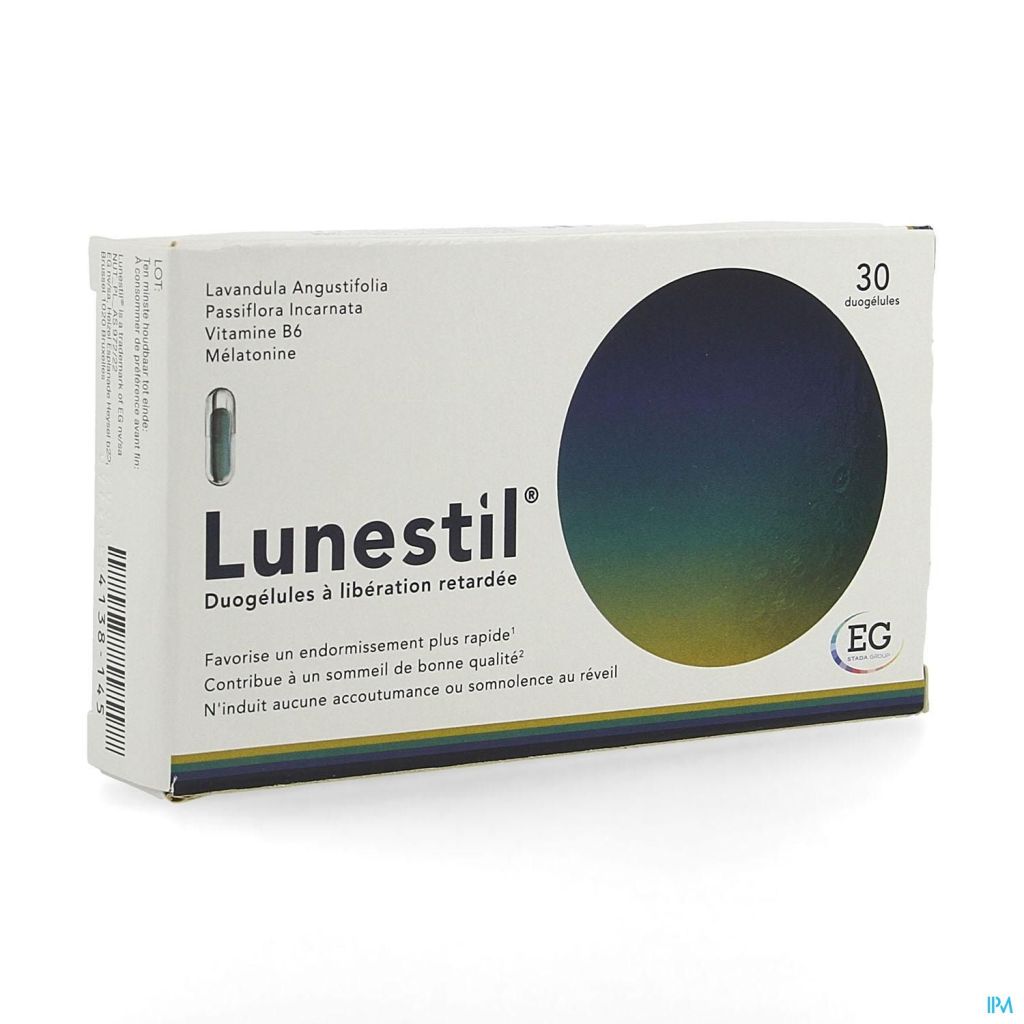 LUNESTIL combine quatre composants puissants dans sa duogélule révolutionnaire (gélule dans une gélule). Cette association unique favorise le repos mental avant le coucher et contribue à une bonne nuit de sommeil – sans induire de l'accoutumance ou de la somnolence au réveil. Un mauvais sommeil peut être causé par différentes raisons telles que le stress temporaire, une mauvaise hygiène du sommeil, une modification du mode de vie ou un événement émotionnel. Le stress et les tensions vous gardent en alerte. Si vous êtes stressé, il est difficile de profiter d'une bonne nuit de sommeil.Un mauvais sommeil régulier génère à terme un cercle vicieux. Pendant la journée, vous avez du mal à vous concentrer et vos performances sont moins bonnes, ce qui vous tracasse souvent pendant la nuit.