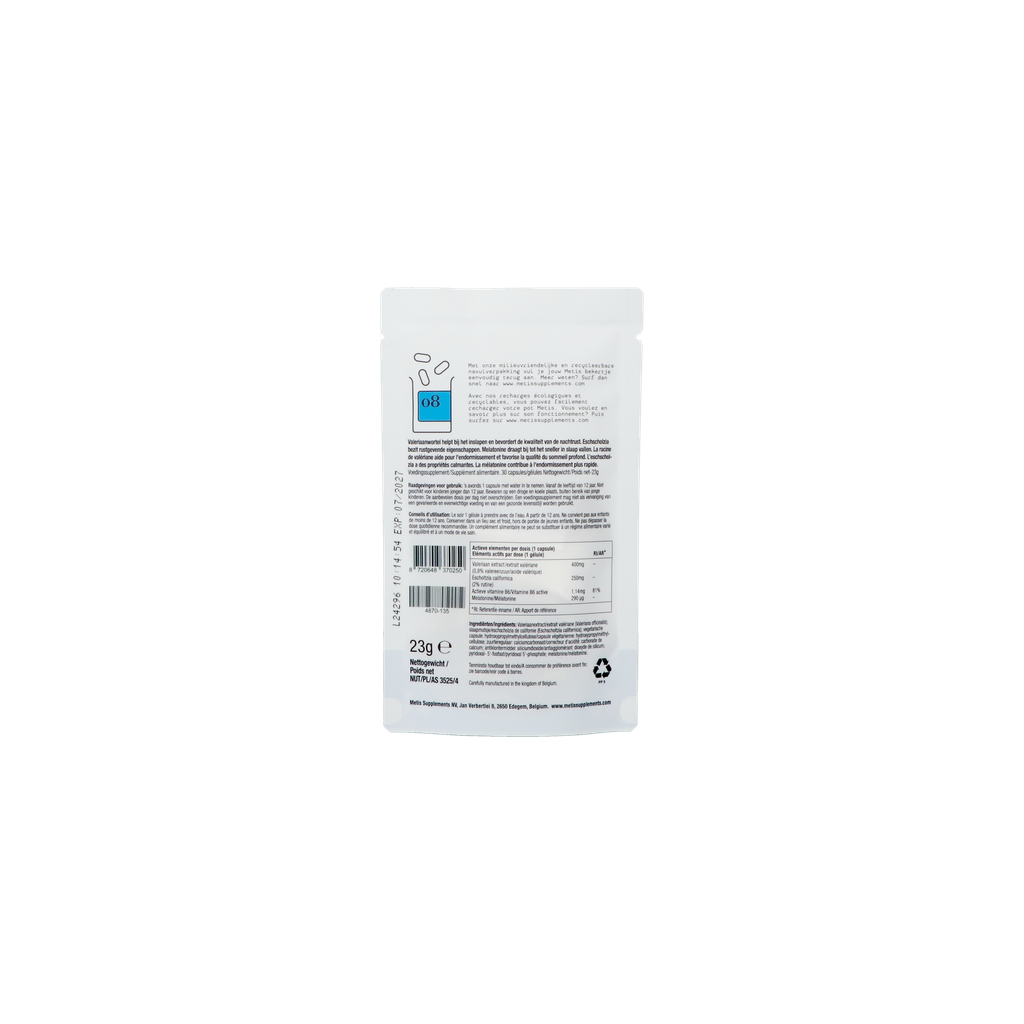 Metis Sleep 08 est un complément de sommeil efficace qui ne provoque pas d'accoutumance. Il vous aide à mieux dormir et à vous réveiller moins souvent la nuit. Avec cette recharge Eco-Refill, vous pouvez facilement recharger le gobelet Start du Sommeil 08.
