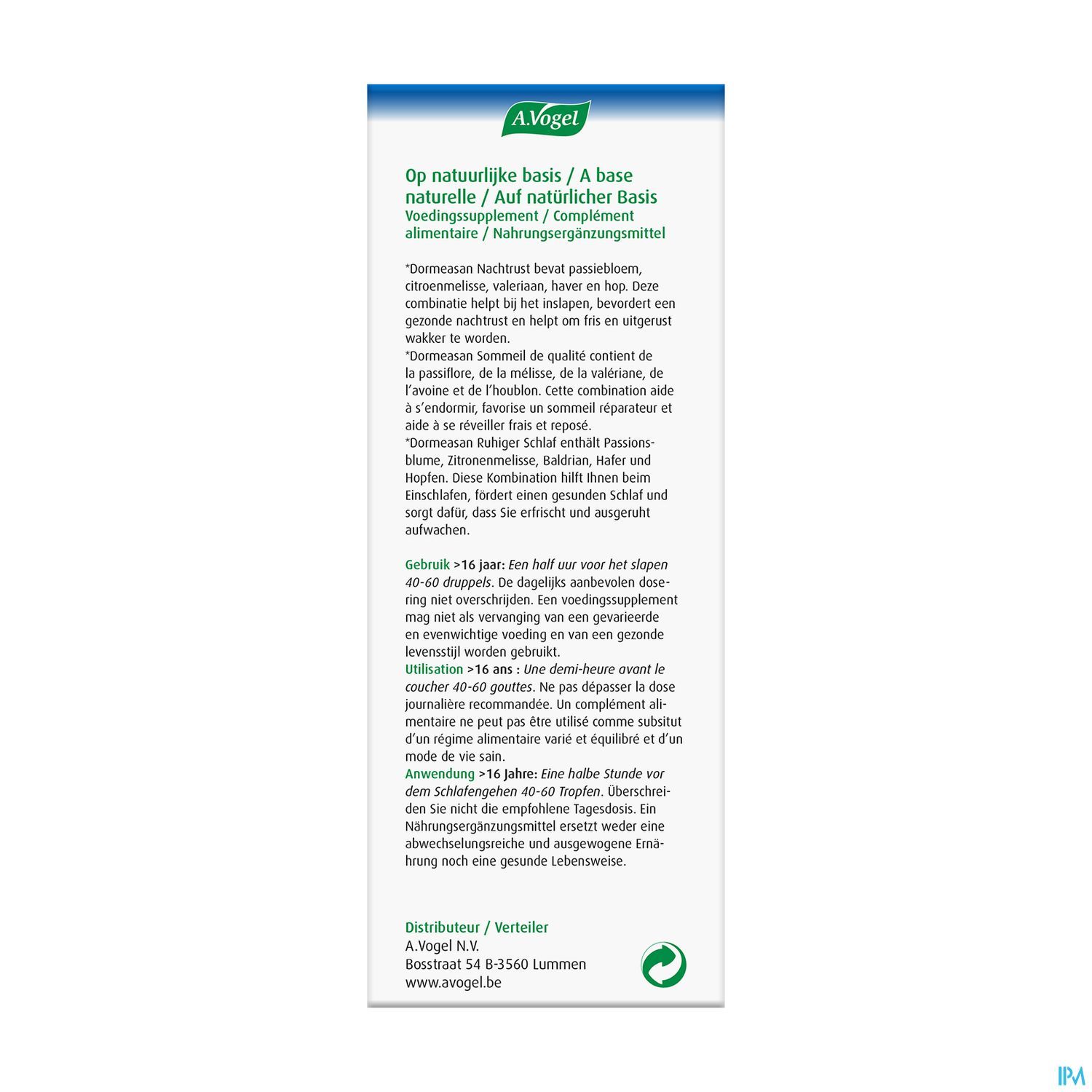 - Principes actifs : teintures de Valeriana officinalis radix (valériane), Humulus lupulus (houblon), Passiflora incarnata (passiflore), Melissa officinalis (mélisse), Avena sativa (avoine).