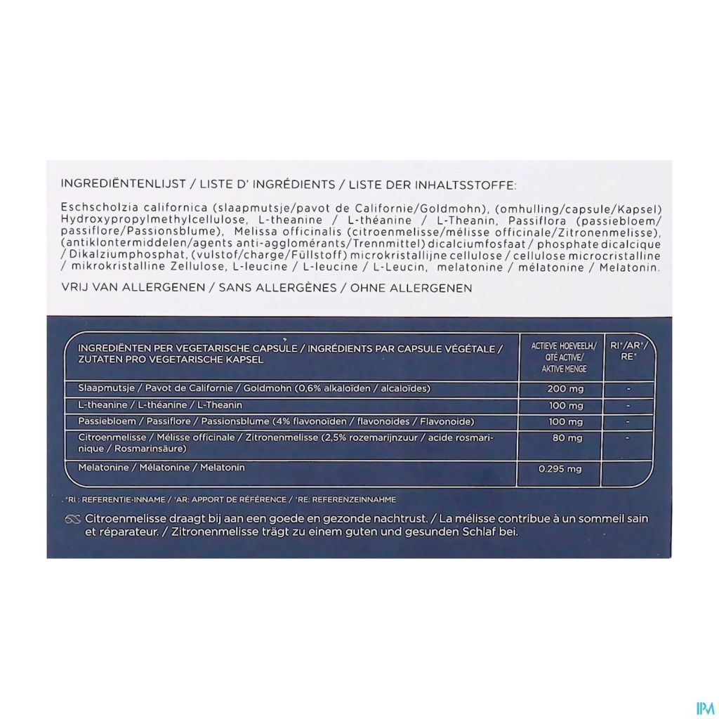 - combinaison efficace de plantes apaisantes avec ajout de mélatonine, l'hormone du sommeil produite naturellement par l'organisme