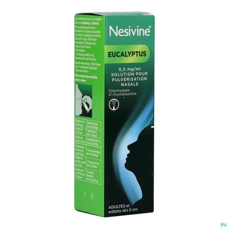 Nesivine Eucalyptus est un spray nasal utilisé pour le soulagement topique des symptômes d'un nez bouché dû à un rhume ou une rhinite, chez les adultes et les enfants de plus de 6 ans.