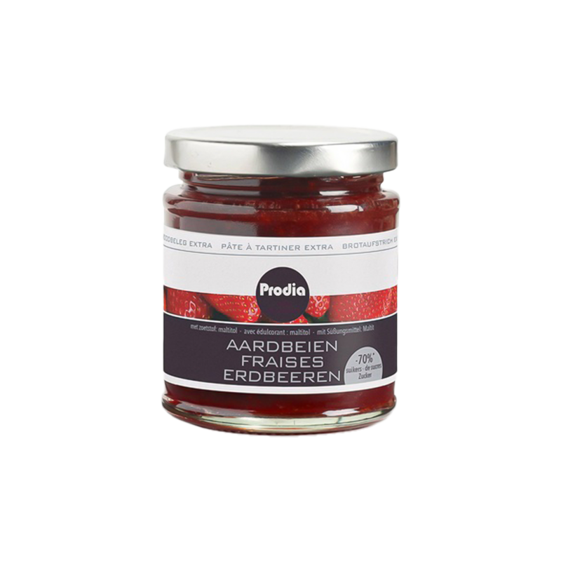 Prodia confiture extra contient plus de morceaux. Avec maltitol.