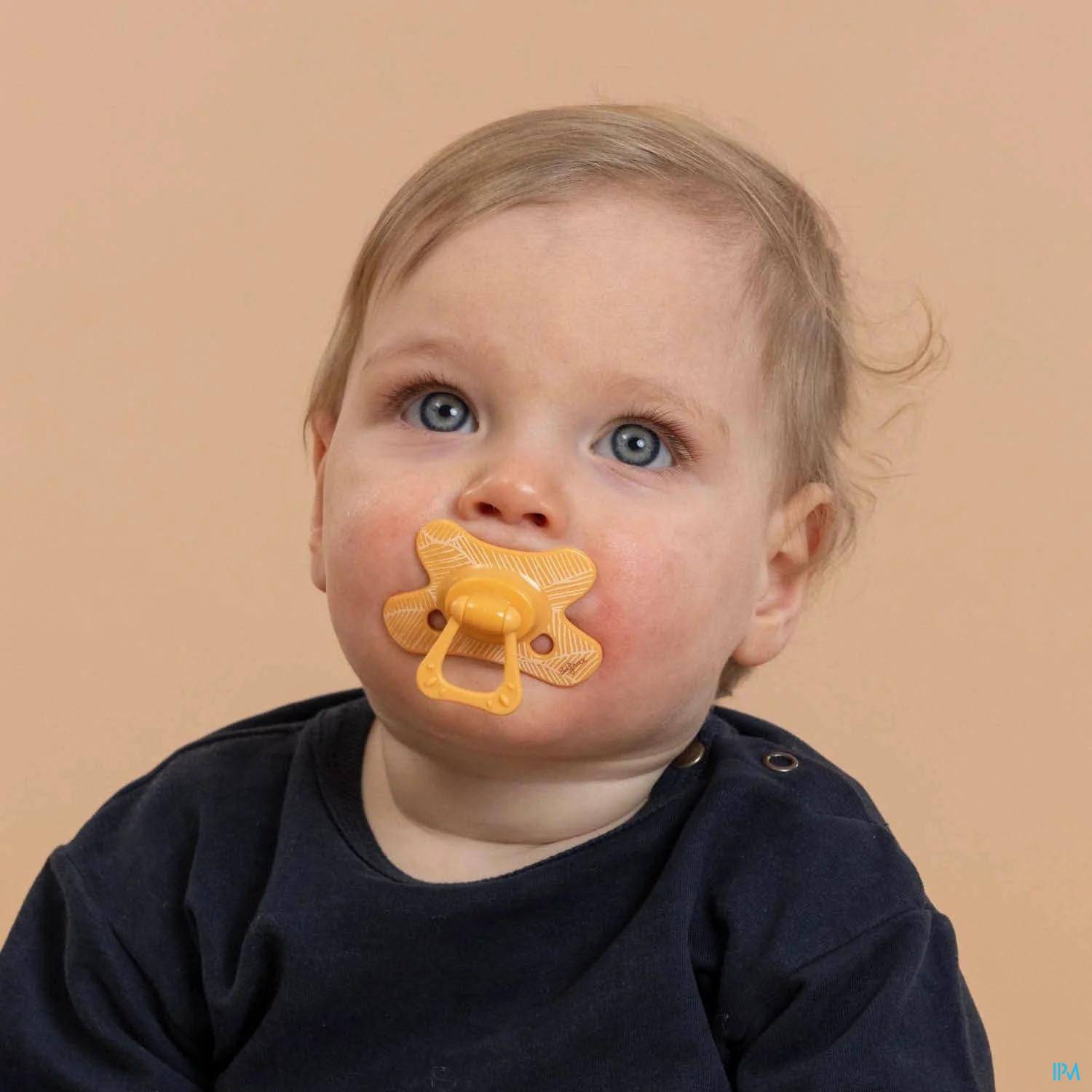 La téterelle de la sucette 12+M est légèrement plus dure que la sucette 6+ M mais plus souple que la sucette 18+ M. Ainsi, le réflexe de succion diminue, ce qui est la première étape pour se déshabituer de la sucette.
