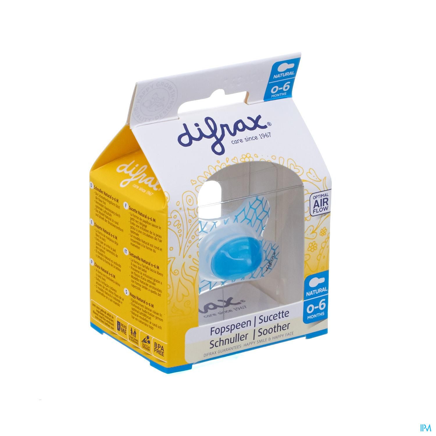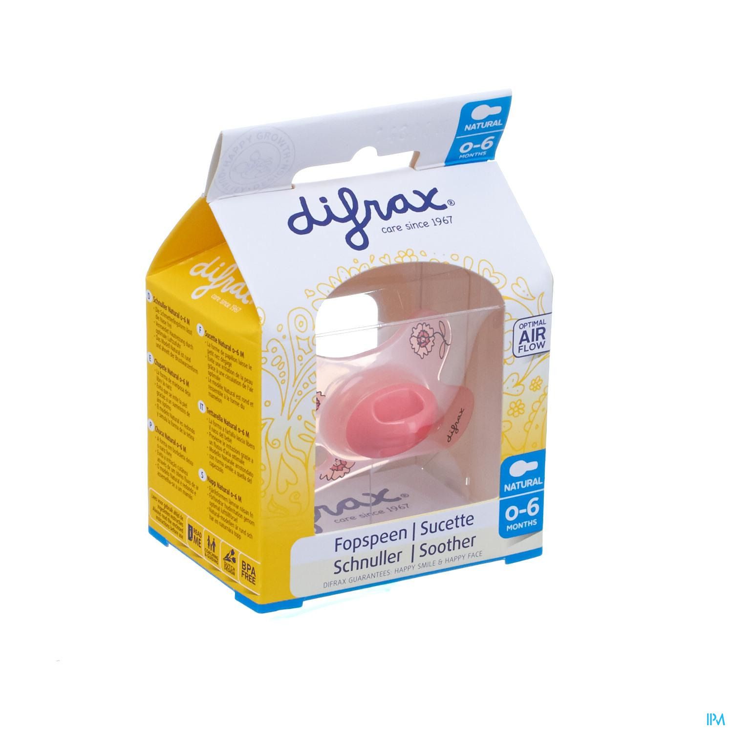 La forme arrondie de la sucette est idéale pour les enfants qui n'ont aucun mal à la faire pivoter tout seuls. La taille de la collerette et la taille de la téterelle ont été spécialement développées pour les nouveau-nés jusqu'à 6 mois.