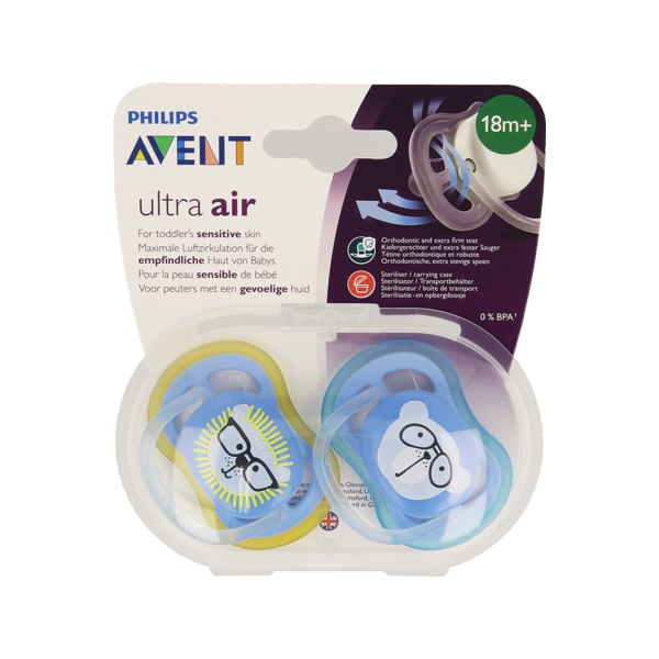 Vous pouvez commander en ligne avent sucette air boy lion ours + 18 mois, distribué(e) par avent sur Pharmacodel, votre pharmacie en ligne.