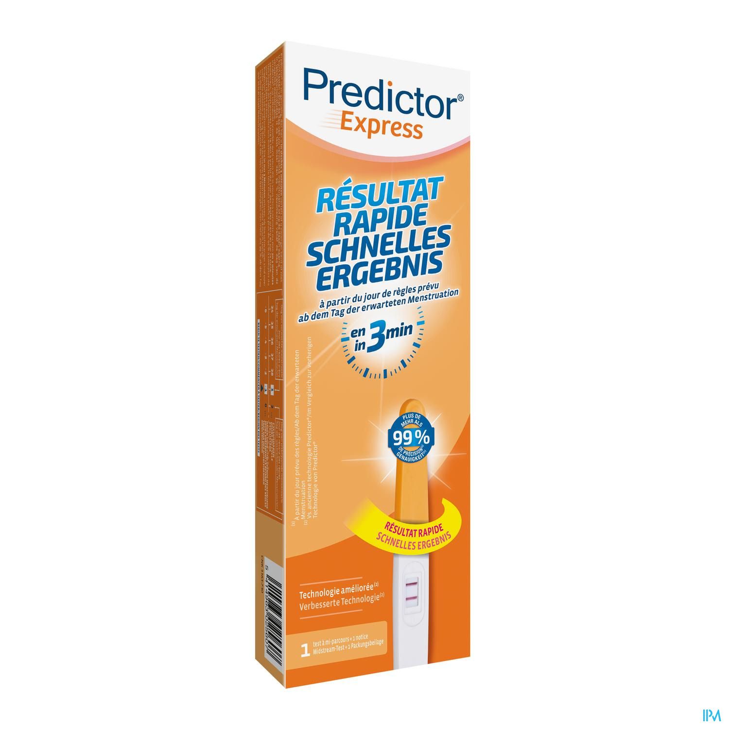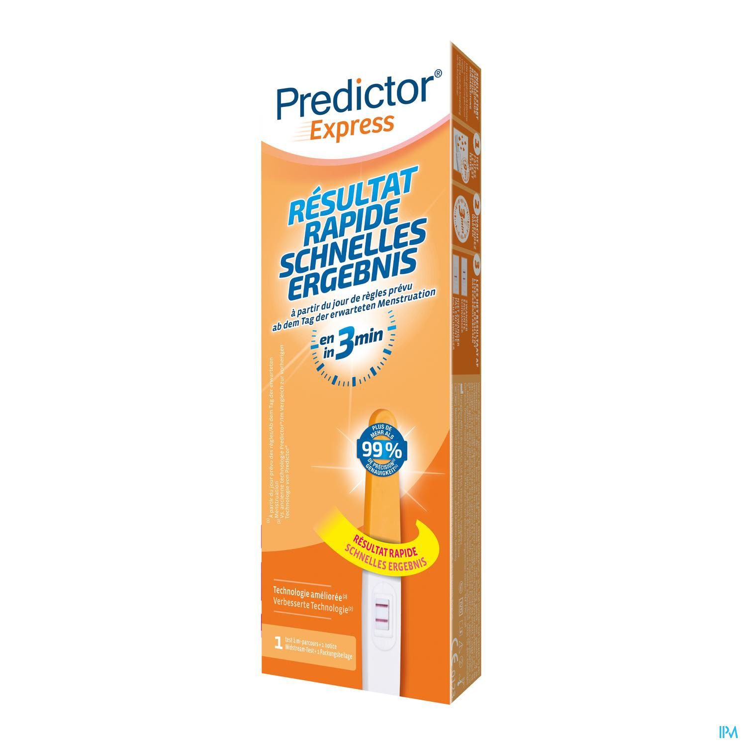 - Résultat fiable: des études de laboratoire ont montré que Predictor® Express était précis à plus de 99 % à compter du jour des règles prévu.