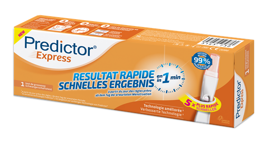 Predictor® Express est tellement sensible qu'il peut vous indiquer si vous êtes enceinte ou non en 3 minutes à peine à partir du jour des règles prévu et par la suite.