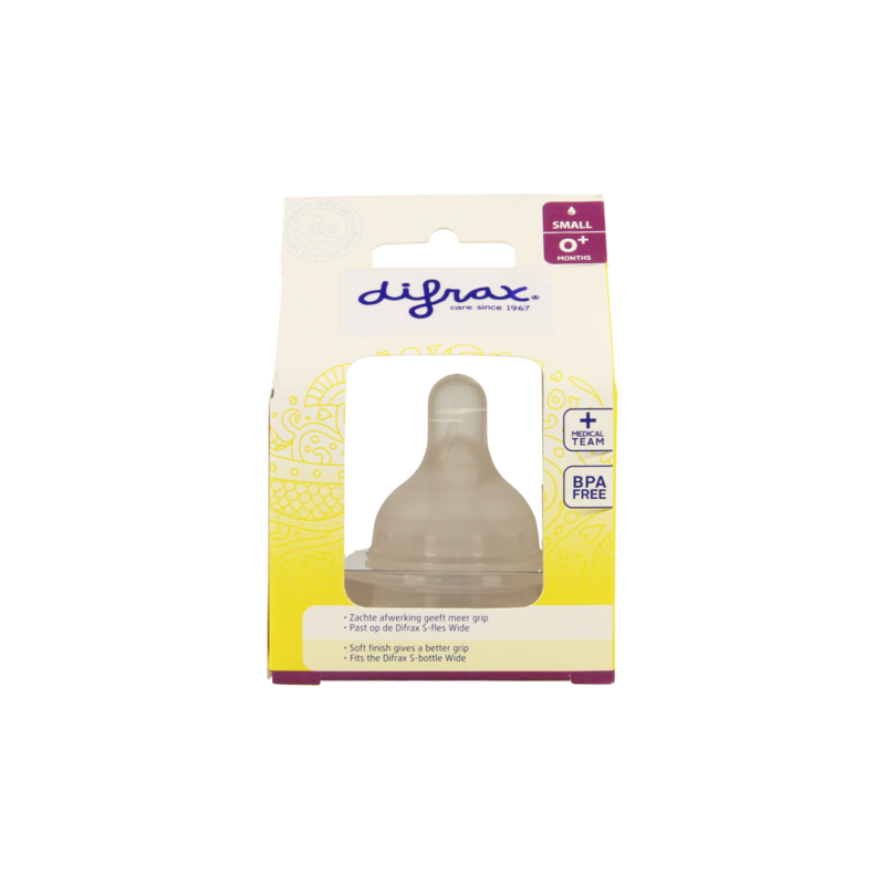 La tétine Difrax Wide Small pour le biberon S Wide possède un bout rond et souple de la forme d'un mamelon, qui rappelle le sein maternel, permettant de combiner facilement alimentation maternelle et de substitution.