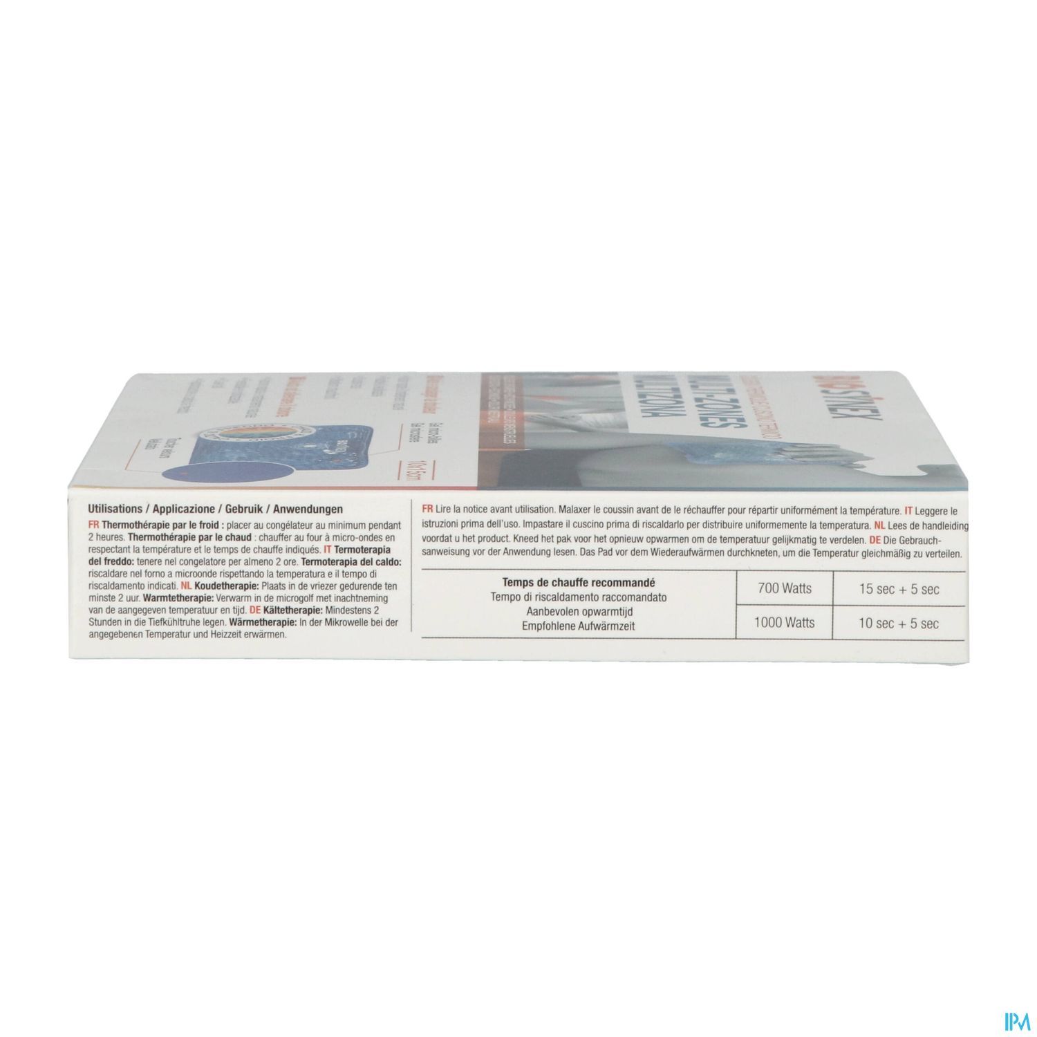 Utilisation à chaud : Pour une utilisation à chaud, chauffez votre produit au micro-ondes en suivant les instructions du tableau des temps de chauffe. Veillez à ce que les bords de votre produit ne touchent pas les bords du micro-ondes. La température du produit peut être plus élevée sur les bords. Nous vous recommandons de le pétrir pour répartir la chaleur dans le produit. Pour éviter les brûlures, vérifiez toujours la température du produit au toucher. Si le coussin est trop chaud, laissez-le refroidir. Si le coussin est trop froid, placez-le à nouveau dans le four à micro-ondes et mettez-le dans la phase opposée. Tenez compte du temps de chauffage supplémentaire, indiqué dans le tableau des temps de chauffage. Appliquez votre produit sur la zone traitée pendant 20 minutes au maximum et veillez à respecter un intervalle de 20 minutes entre les applications.