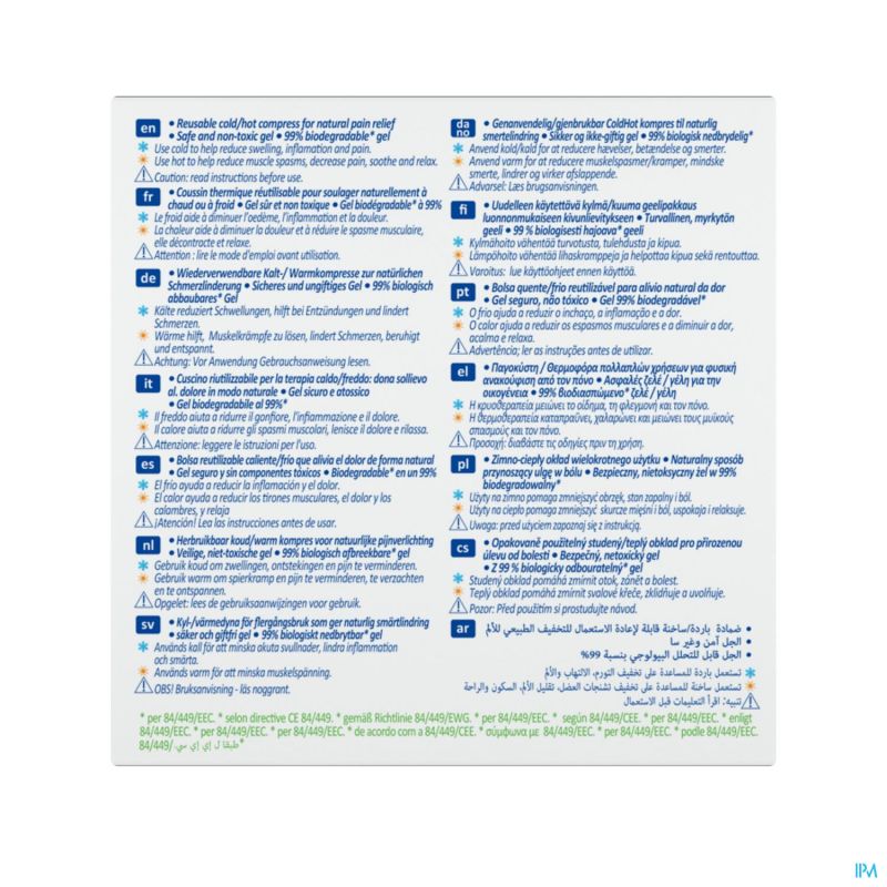 Atténuez la douleur et l'inflammation sans médicament, grâce à la méthode de la thermothérapie basée sur les coussins thermiques Nexcare ColdHot. Nos compresses peuvent être utilisées froides ou chaudes et constituent une solution pour les personnes qui préfèrent un traitement simple et sans médicament. Ces produits, qui peuvent être conservés au congélateur ou au réfrigérateur, peuvent être chauffés à l'eau chaude ou au micro-ondes. Malaxer pour répartir la chaleur de manière uniforme ! Toujours insérer le coussin thermique dans la housse fournie à cet effet ou dans une serviette propre lors de l'application sur la peau. La housse de protection du coussin thermique est incluse. Elle permet une application rapide, facile et confortable du coussin thermique et protège la peau. Le produit conserve sa température jusqu'à 20 minutes.