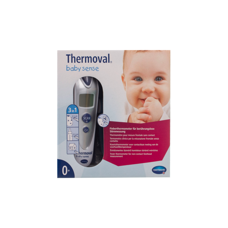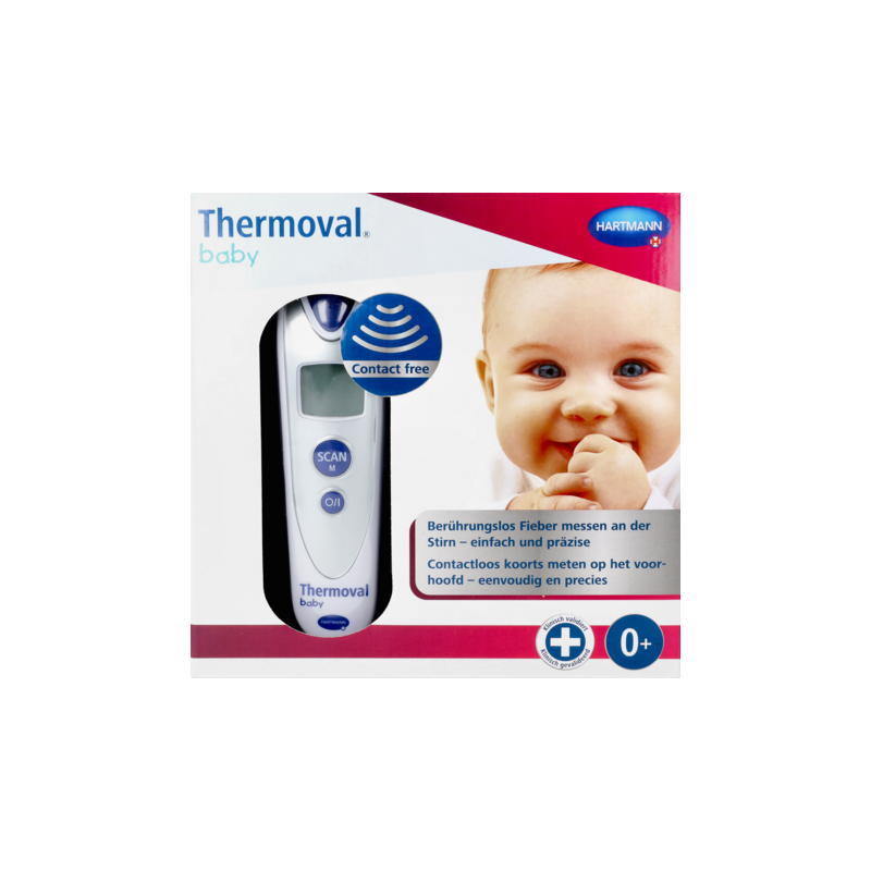 Thermoval Baby est un thermomètre pour mesure frontale sans contact. Il permet une mesure facile, rapide et confortable de la température de votre enfant. Ce thermomètre permet également de mesurer la température d'une pièce ou de l'eau du bain de votre enfant.