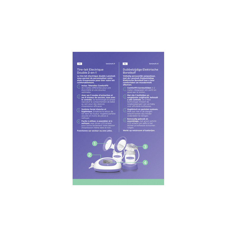 Le tire-lait fonctionne également sur piles, ce qui est idéal pour une utilisation à l'extérieur. Il est doté d'un système fermé spécial qui empêche le lait maternel de pénétrer dans les tuyaux et garantit le fonctionnement sûr et sans dommage de l'appareil. Tout cela rend l'expression du lait plus efficace que jamais. L'appareil dispose également d'un écran LED qui vous permet d'exprimer votre lait dans des environnements peu éclairés.