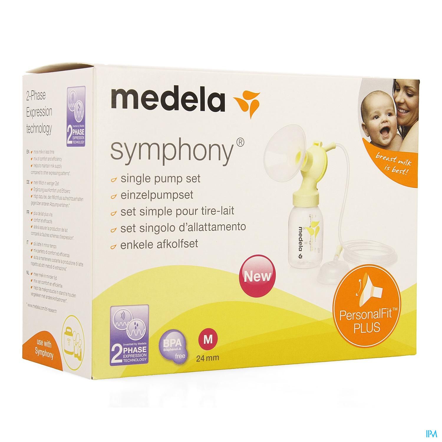 Le Symphony est doté des technologies d'initiation et 2-Phase Expression de Medela, d'un système de protection contre les débordements et des accessoires pour expression simple ou double.