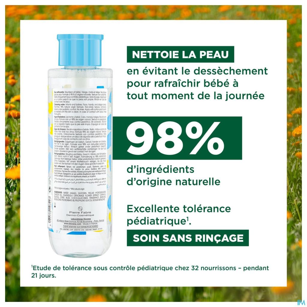 • Naturellement douce : formule apaisante sans alcool à 98 % naturelle**, testée pédiatriquement***. • Nettoyante : purifie efficacement et sans rinçage corps et visage en respectant l'épiderme. • Protectrice : agents hydratants naturels et fleurs de Calendula issues de culture BIO pour apaiser et protéger la peau sans dessécher.