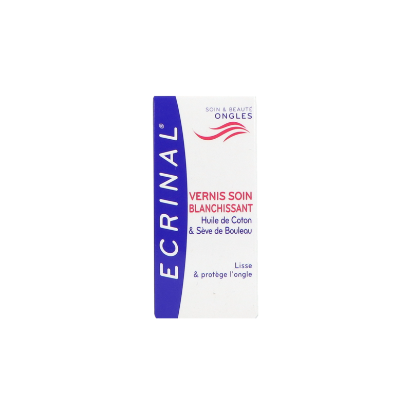 ECRINAL® Vernis Soin Blanchissant redonne immédiatement aux ongles jaunis un aspect clair, sain et naturel. Les fines particules apportent un effet lumineux tout en hydratant et nourrissant l'ongle, et le protègent efficacement comme un bouclier protecteur.