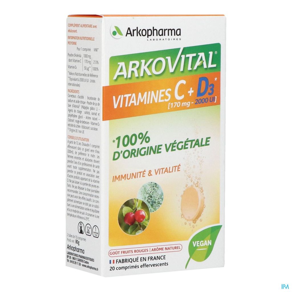 Avec Arkovital® Vitamines C + D3, découvrez enfin le pouvoir du duo de vitamines d'origine végétale pour aider à renforcer votre immunité.