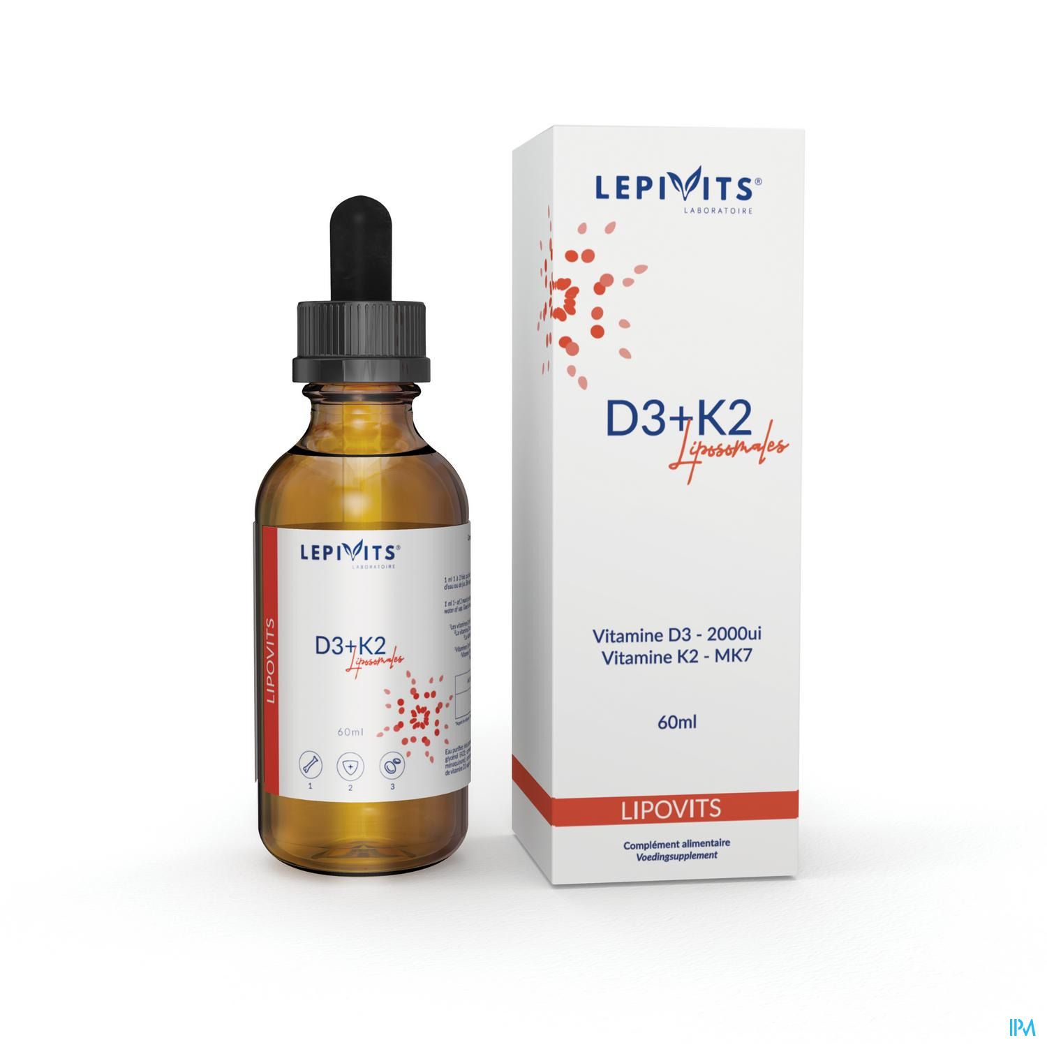 D3 + K2 liposomales est une formulation optimisée pour l'absorption des vitamines D et K. Ce complément alimentaire sous forme de gouttes contient des vitamines liposomées d'origine naturelle dont la solution au goût d'abricot est certifiée végane, kasher et halal. La vitamine D est extraite à partir d'algues (Vita-algae D®)[1] ga- rantissant un apport en cholécalciférol pur (forme D3 100%) et non à base de D3 d'origine animale. La vitamine K est obtenue à partir du soja fermenté apportant de la vitamine K2 (ménaquinone MK-7) mieux assimilée[2]. Cette synergie de vitamines est incorporée dans une solution liposomale pour optimiser son absorption, sa sta- bilité et sa biodisponibilité au sein de l'organisme. La formulation liposomale permet aux vitamines D3 et K2 de traverser l'estomac, sans être endommagées. L'absorption intestinale des liposomes est améliorée en passant par la voie des chylomicrons au sein des entérocytes et en circulant via le système lymphatique. L'absorption cellu- laire est augmentée pour les vitamines D (x3) et K (x10) par endocytose ou par fusion de la membrane du liposome avec la membrane cellulaire. Cette forme liquide liposo- mée facilite également la prise du complément alimentaire, surtout chez les enfants et les personnes âgées qui ont des difficultés à ingérer des gélules ou des comprimés. Le produit D3 + K2 liposomales est une alternative qui maximise les taux de plasma sanguin en vitamines D et K par rapport aux compléments alimentaires standards.