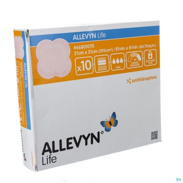 Wondverzorging bij secundaire genezing van oppervlakkige en granulerende wonden, chronische en acute exsuderende wonden, matig tot diepe wonden zoals decubitus, ulcus cruris, diabetische beenulcera, geïnfecteerde wonden, oncologische wonden, operatiewonden, eerste- en tweedegraads brandwonden, donorplaatsen, skin-tears, schimmelende ulcera. Gebruik ALLEVYN Life niet met oxiderende stoffen zoals hypochlorietoplossingen (bv. EUSOL) of waterstofperoxide, aangezien deze de absorberende polyurethaan componenten van het kompres kunnen afbreken. Stop met het gebruik als roodheid of gevoeligheid optreedt.